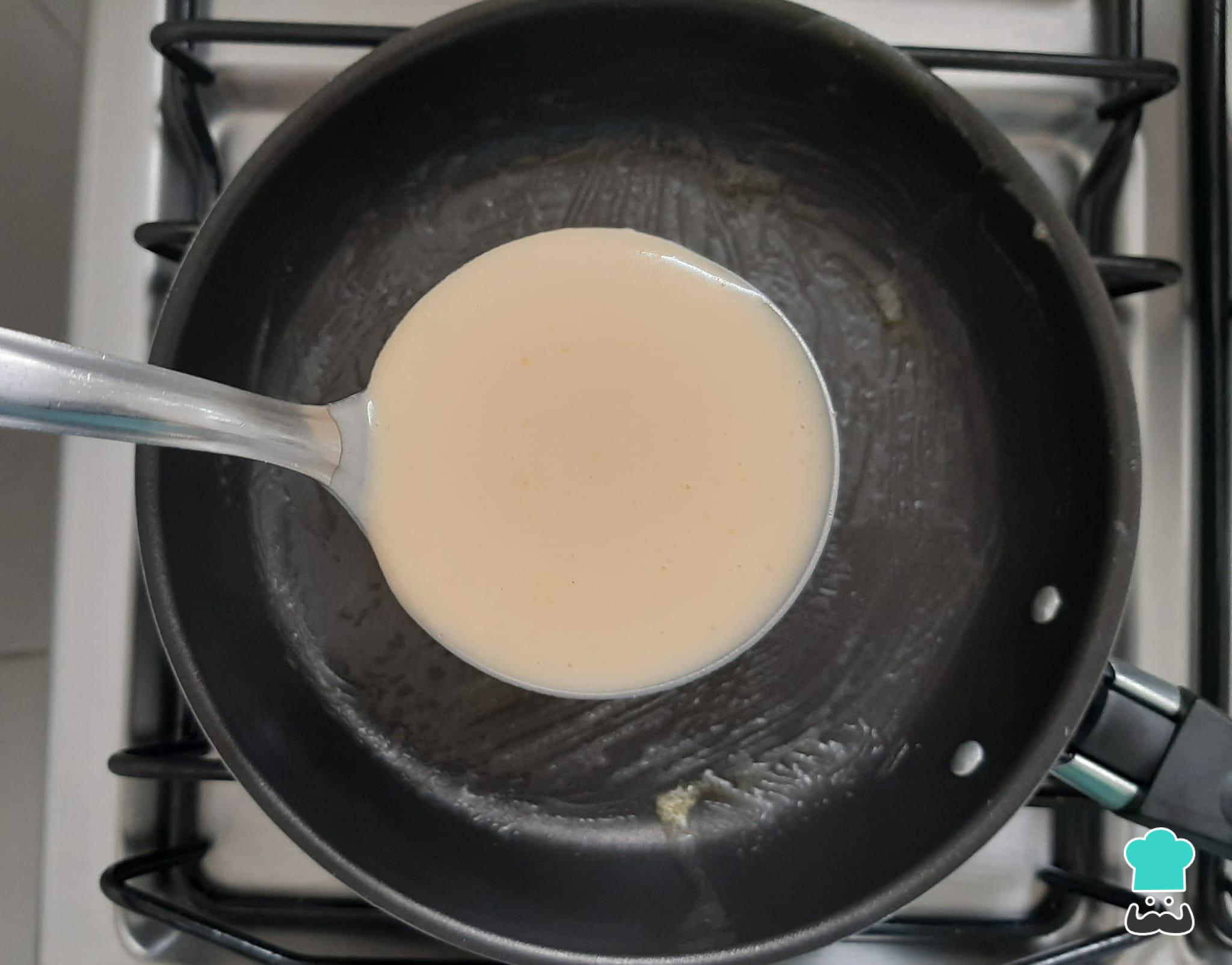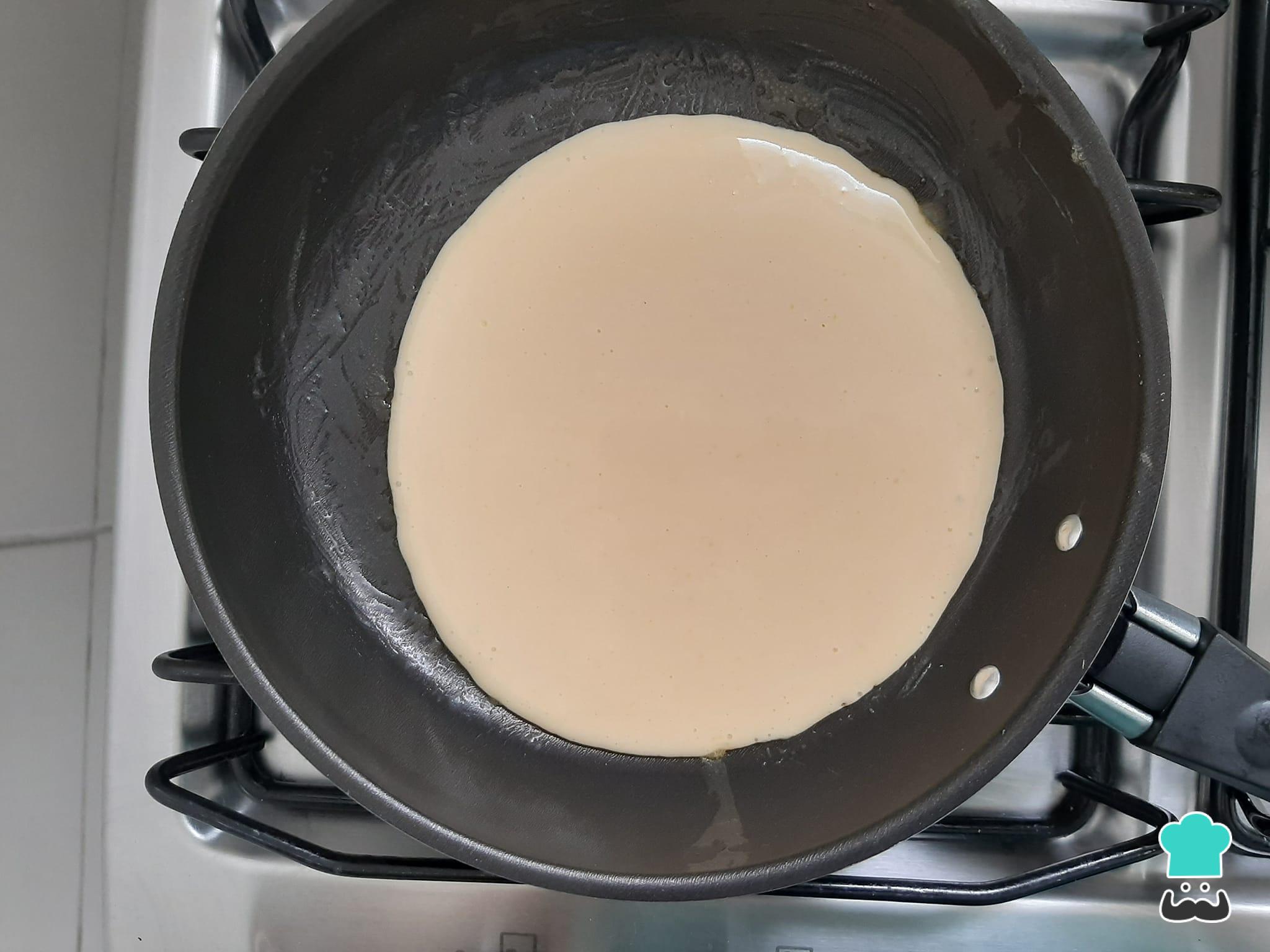 Numa frigideira aquecida, unte com o auxílio de um pincel um pouco de manteiga ou margarina, espalhando bem.