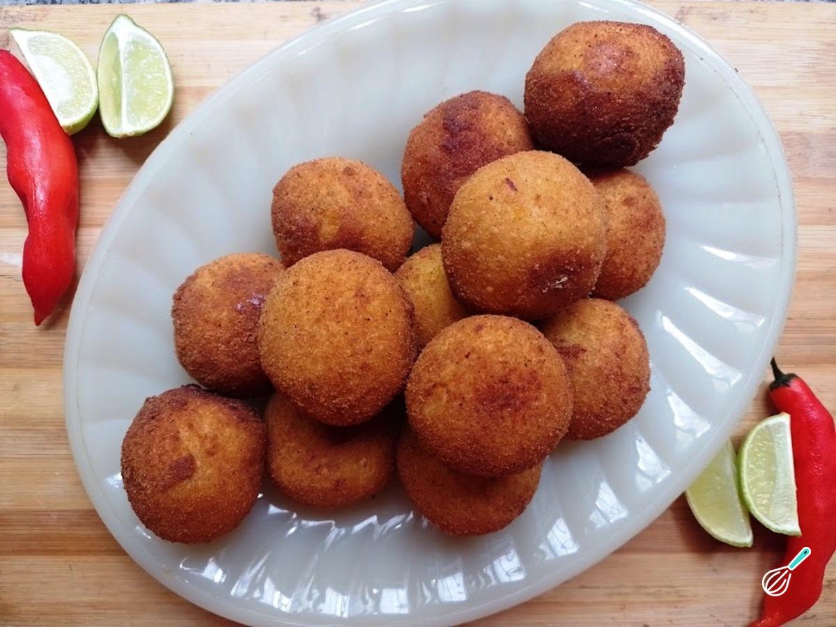 A base do bolinho, é feita com purê de abóbora, que garante suavidade e doçura natural em uma textura macia e cremosa que contrasta perfeitamente com a firmeza e o sabor intenso da carne seca. Além disso, a adição de temperos, como alho, cebola e pimenta dedo-de-moça, eleva o sabor do bolinho. Pode ser servido com petisco numa festa, ou acompanhamento de um almoço especial e até mesmo um lanche reconfortante.