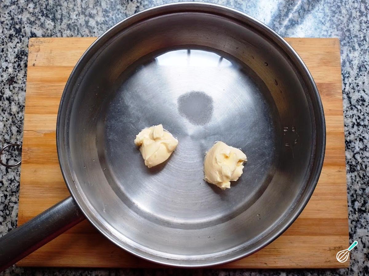 Numa panela, coloque a água e a manteiga ou margarina. Leve ao fogo e aguarde o ponto de fervura.