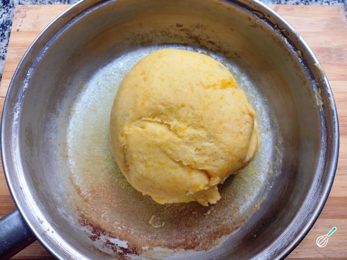 O ponto da massa será quando desgrudar do fundo da panela. Não precisa sovar. Apenas reserve e deixe esfriar para fazer a modelagem do bolinho.