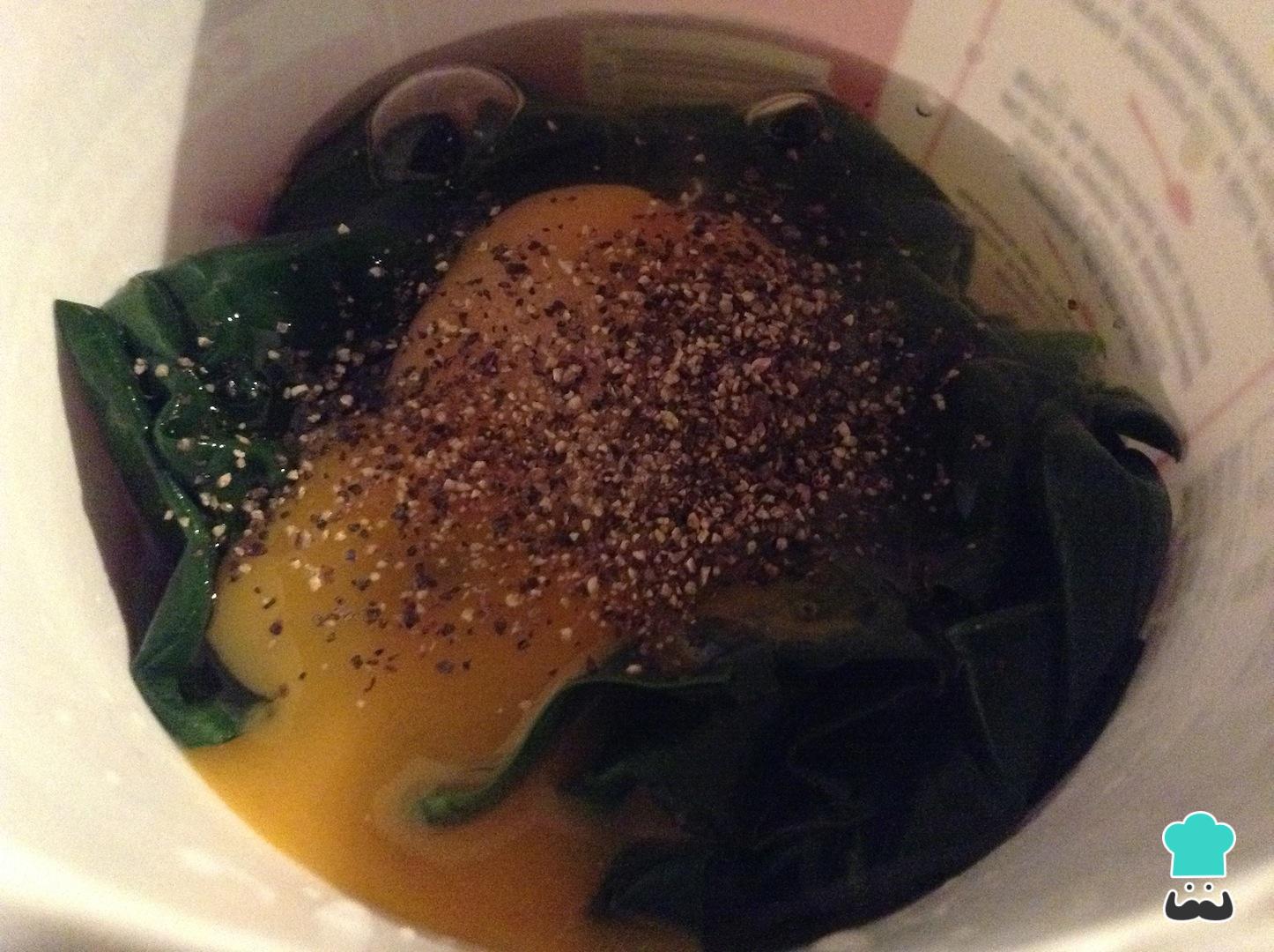 Em seguida bata no liquidificador ou em uma tigela a acelga, o ovo, o alho, a salsinha, pimenta e sal a gosto.