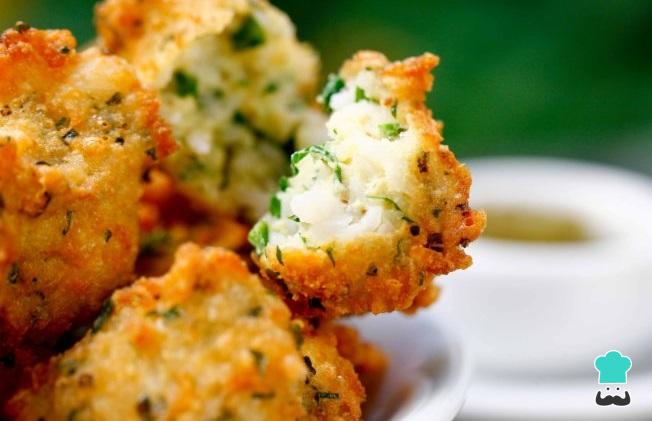 Em seguida molde os bolinhos num formato redondo ou oval e coloque fritando em óleo quente. Se preferir uma opção mais saudável, leve a assar no forno pré-aquecido a 180º durante 20 min.