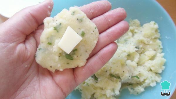 Poderá fazer o seu bolinho simples, ou rechear com queijo, ou com o que mais gostar. Se desejar rechear, basta pegar num pedaço de massa espalmar, colocar o recheio desejado no meio e depois fechar, como poderá verificar na foto abaixo.