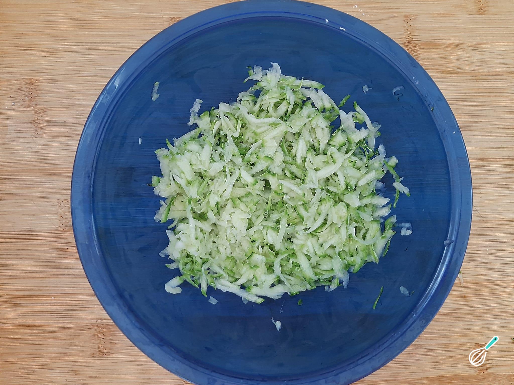 Rale a abobrinha no ralador grosso.