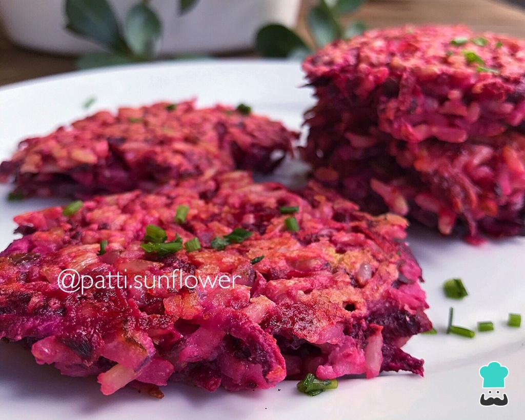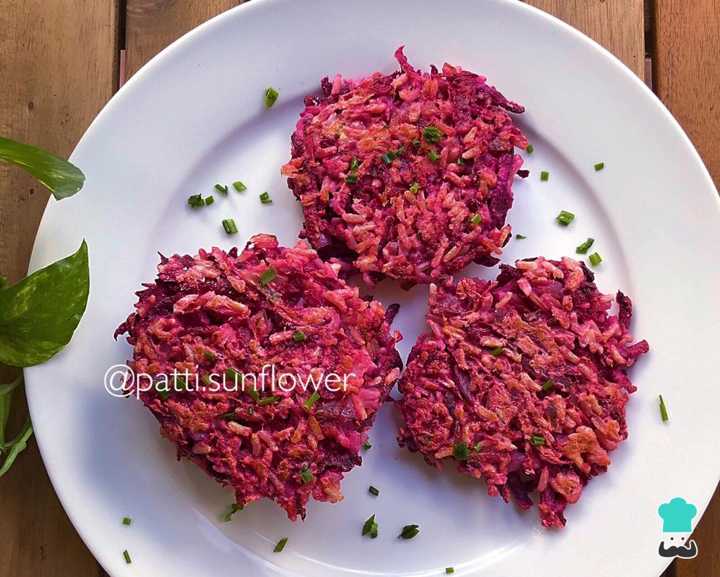 Está sobrando arroz? Que tal um belo de um bolinho de arroz com beterraba, hein? Pra mim bolinho de arroz ainda é a melhor maneira de reaproveitar aquele arroz extra na geladeira, já fiz tudo que é tipo de mistura e é incrível como sempre fica bom!