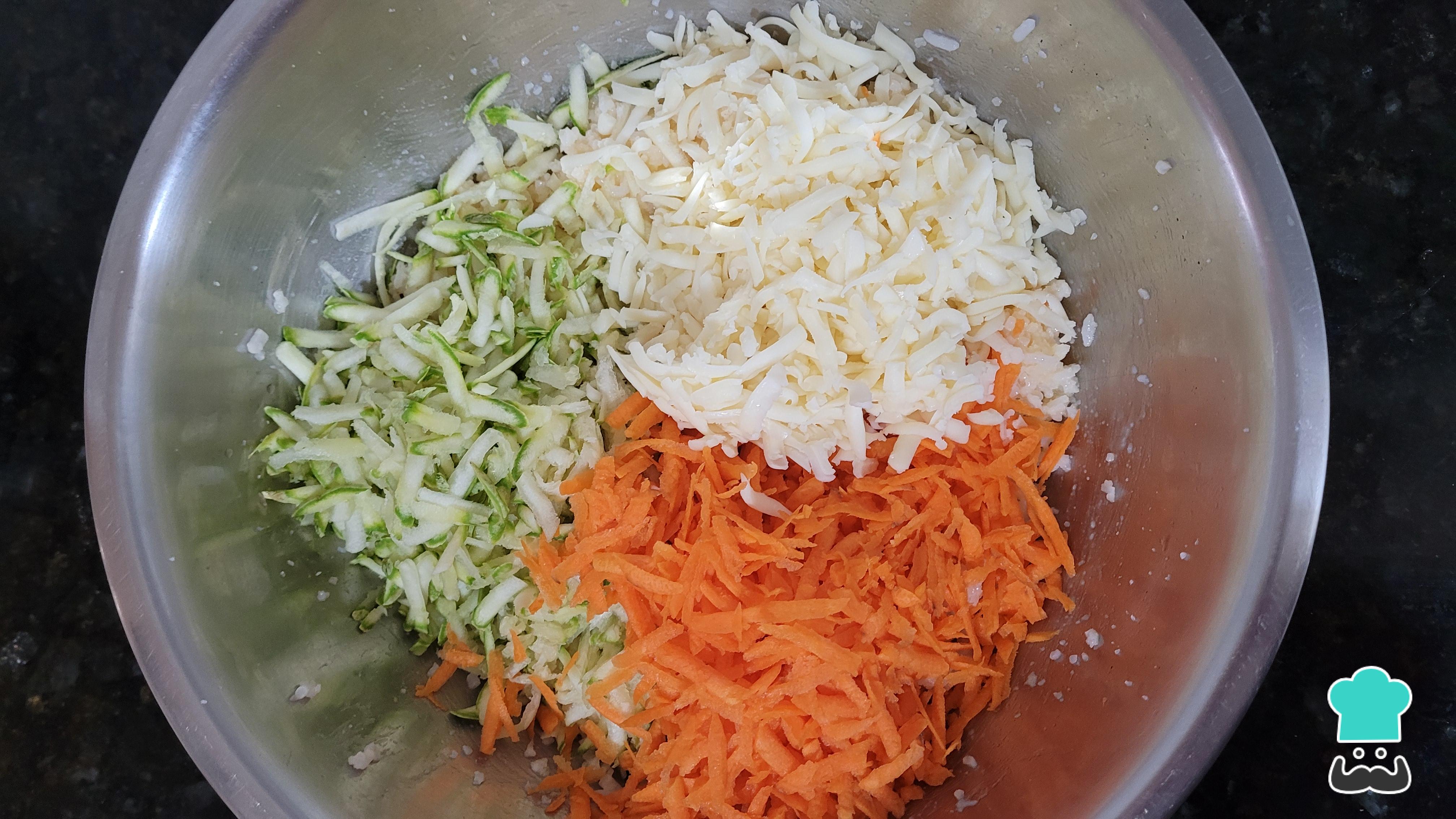 Adicione o queijo, a abobrinha e a cenoura. Mexa novamente.