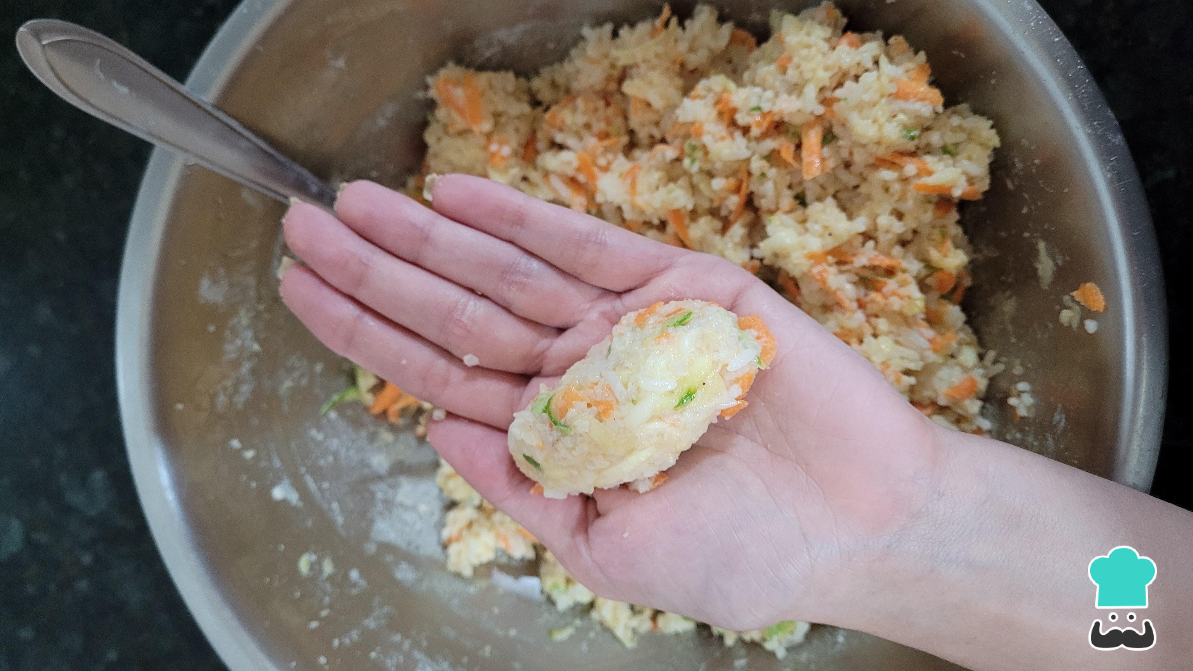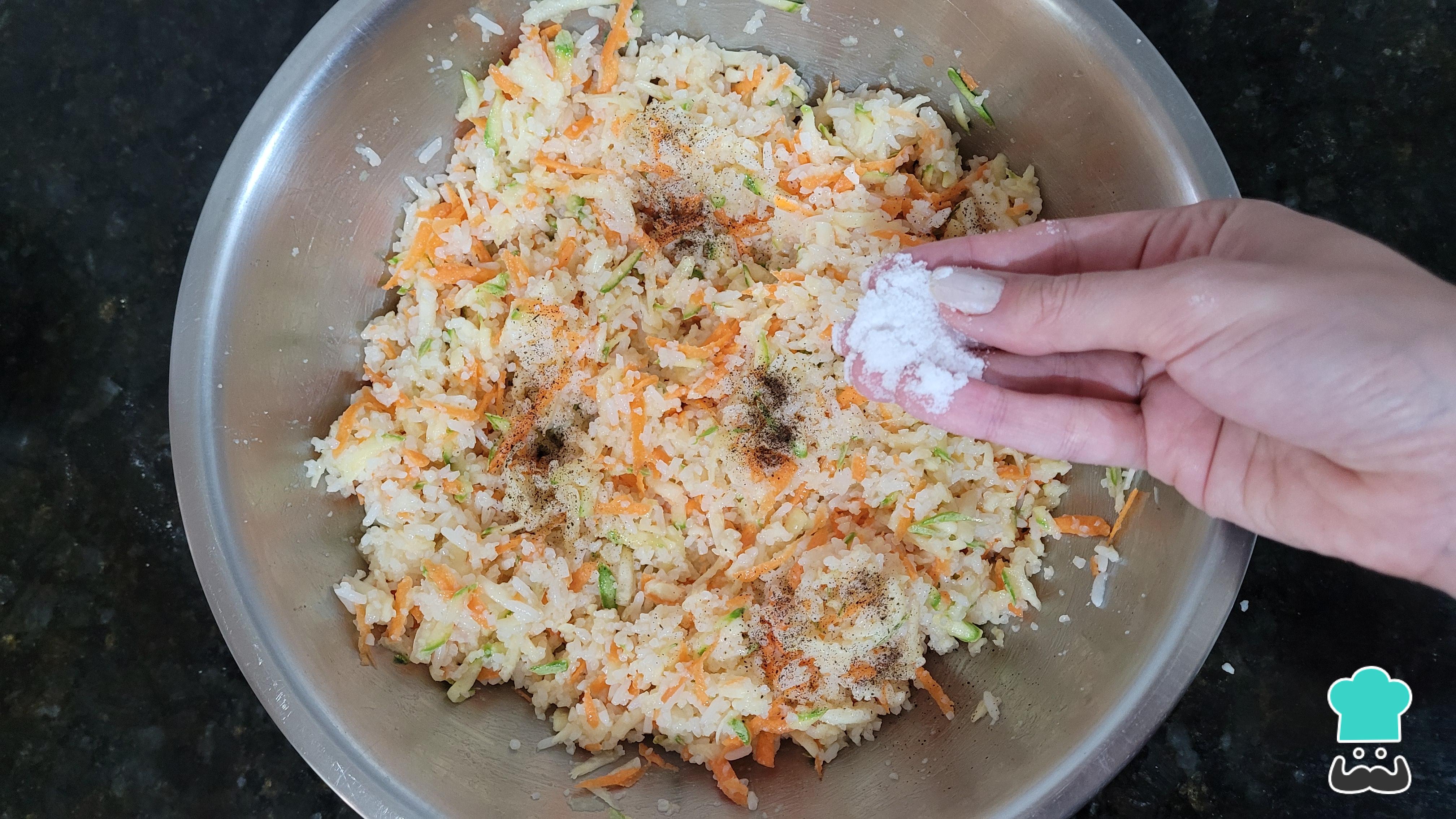 Com o arroz cozido do dia anterior, esse preparo reaproveita o alimento evitando que ele seja perdido. A abobrinha italiana e a cenoura ficam responsáveis por deixar esse bolinho ainda mais nutritivo, mas você ainda pode fazer substituições com milho, pepino, nabos, beterrabas ou o que tiver na geladeira.