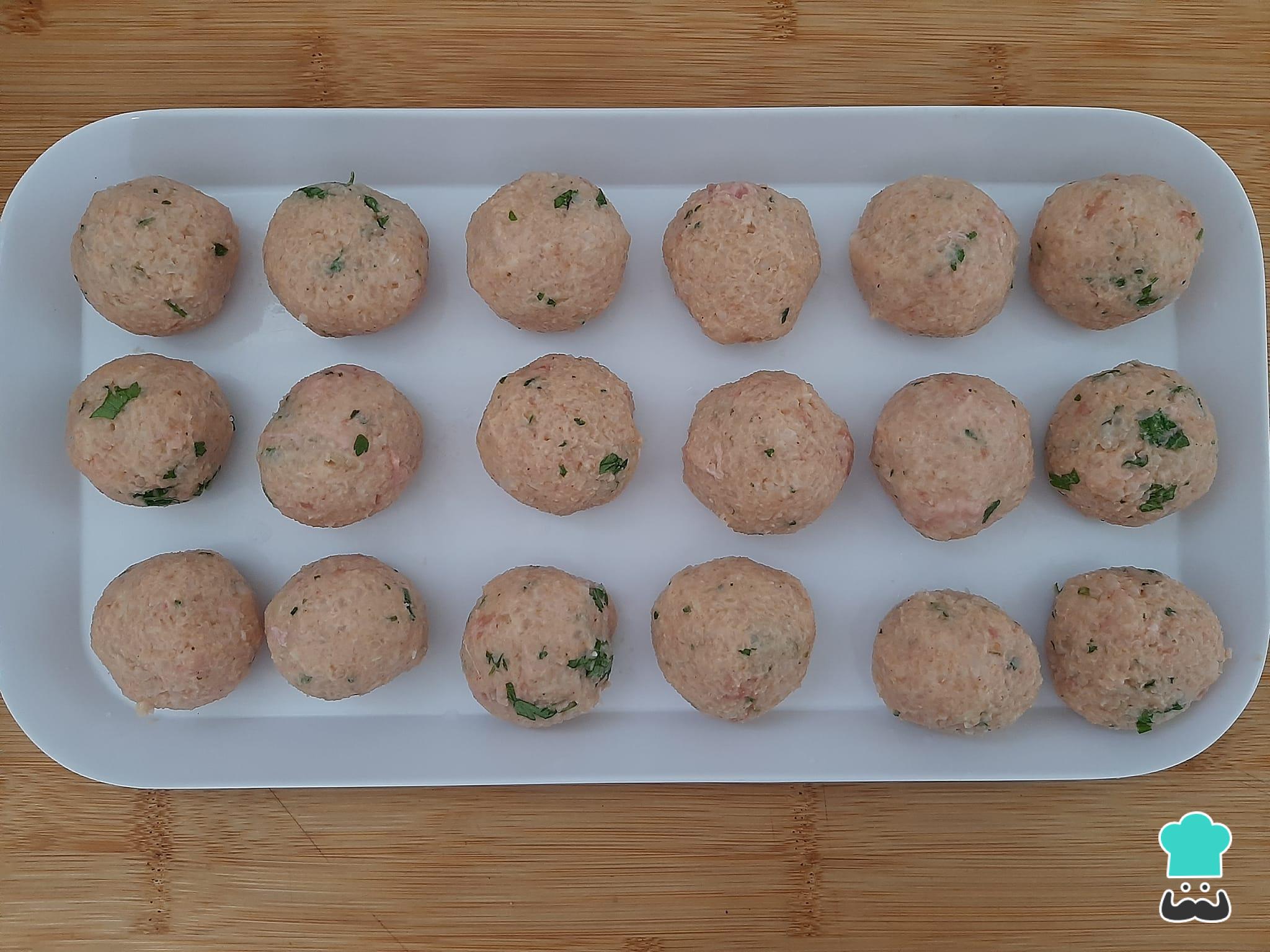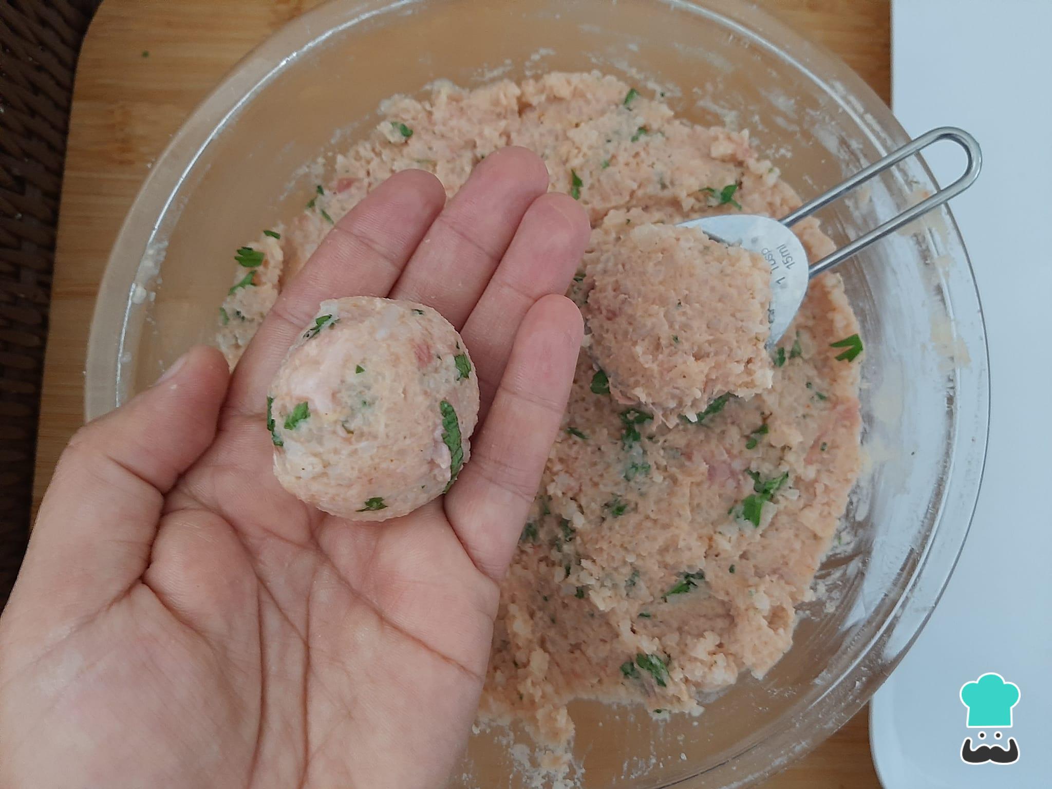 Modele os bolinhos com as mãos levemente umedecidas com água, até terminar toda a massa.