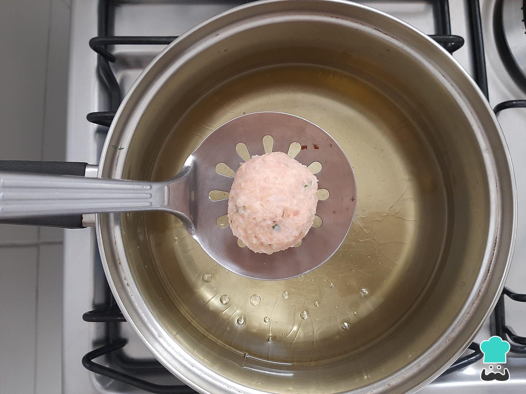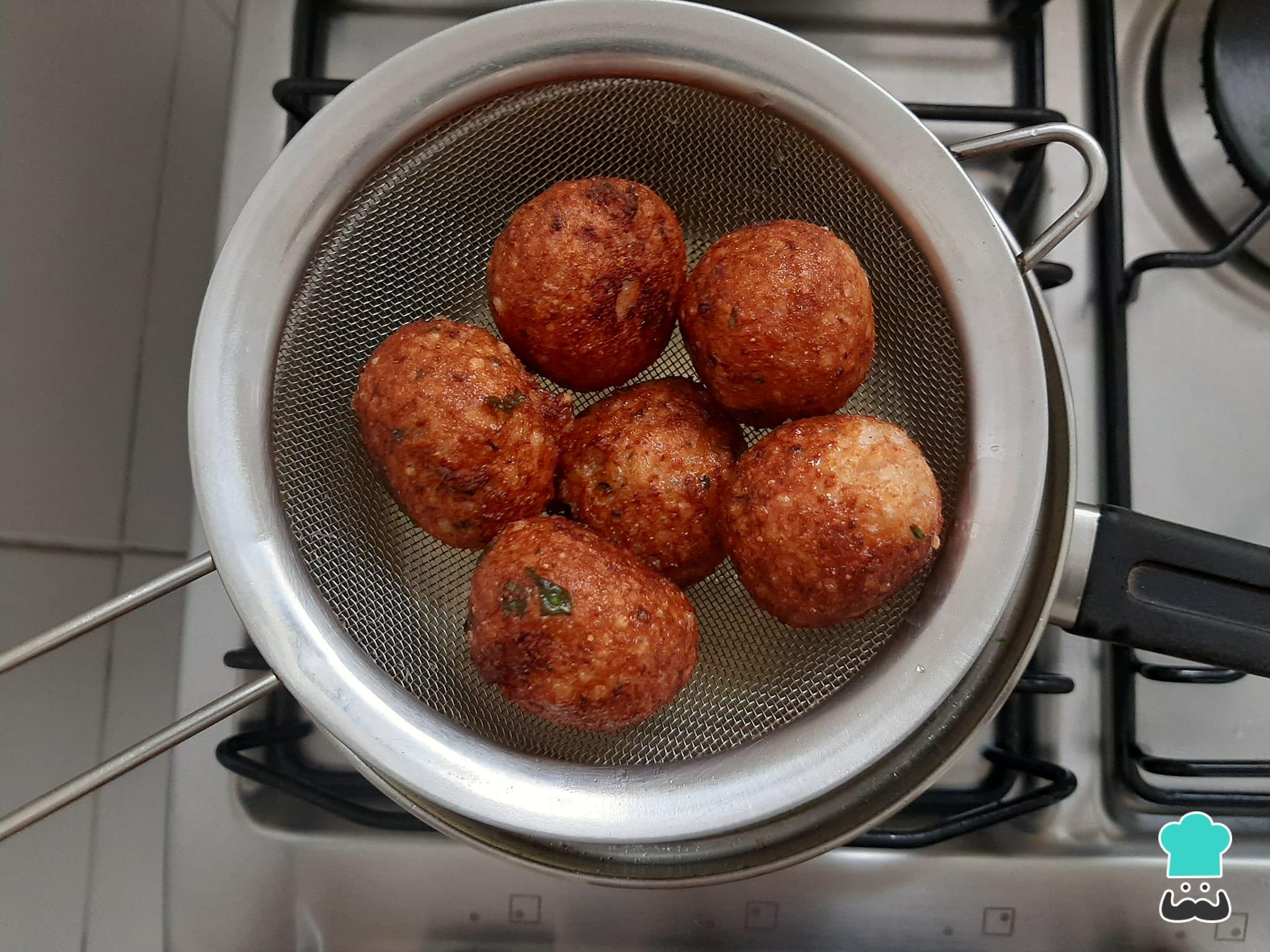 Escorra os bolinhos na escumadeira ou usando uma peneira.