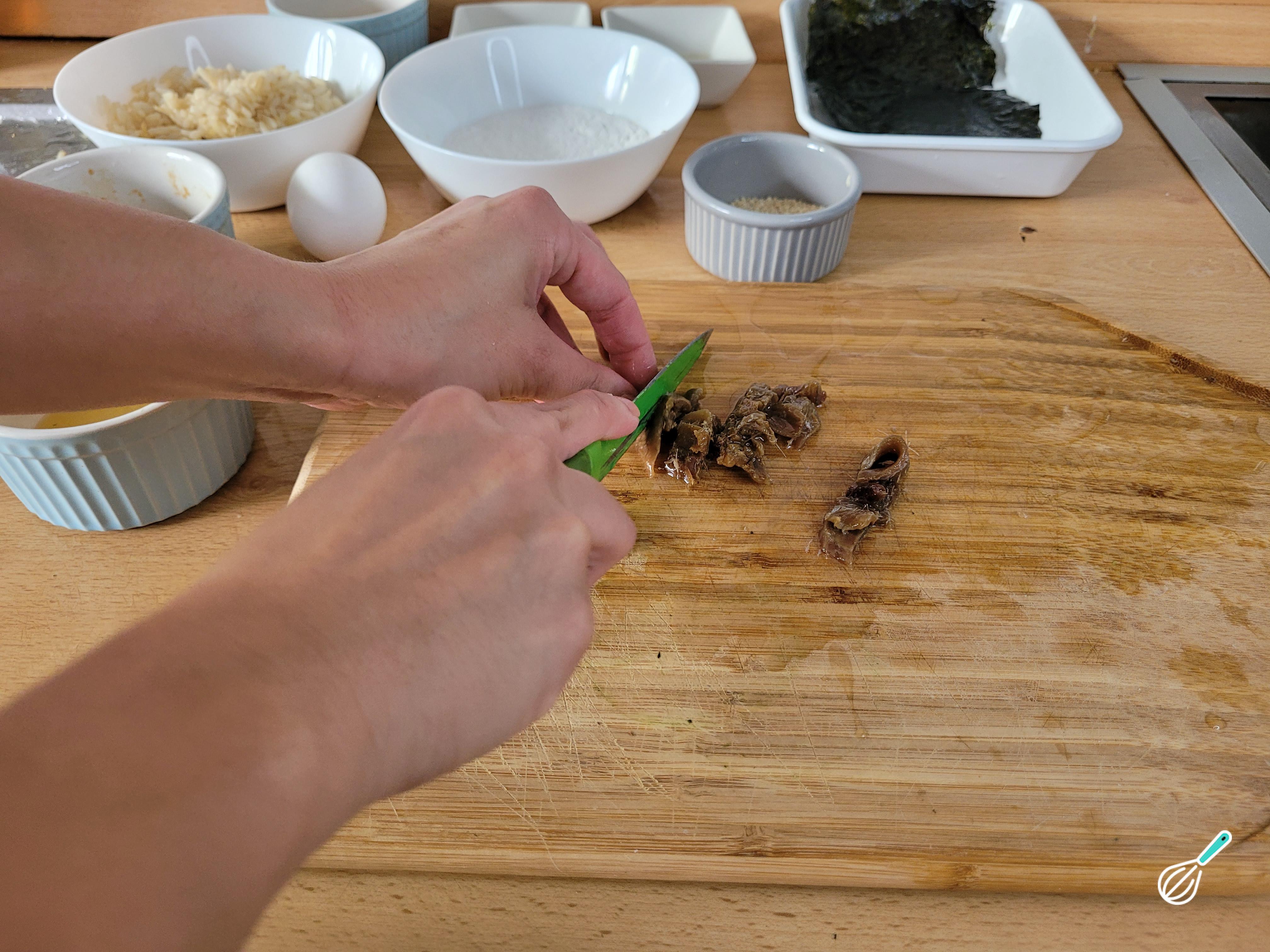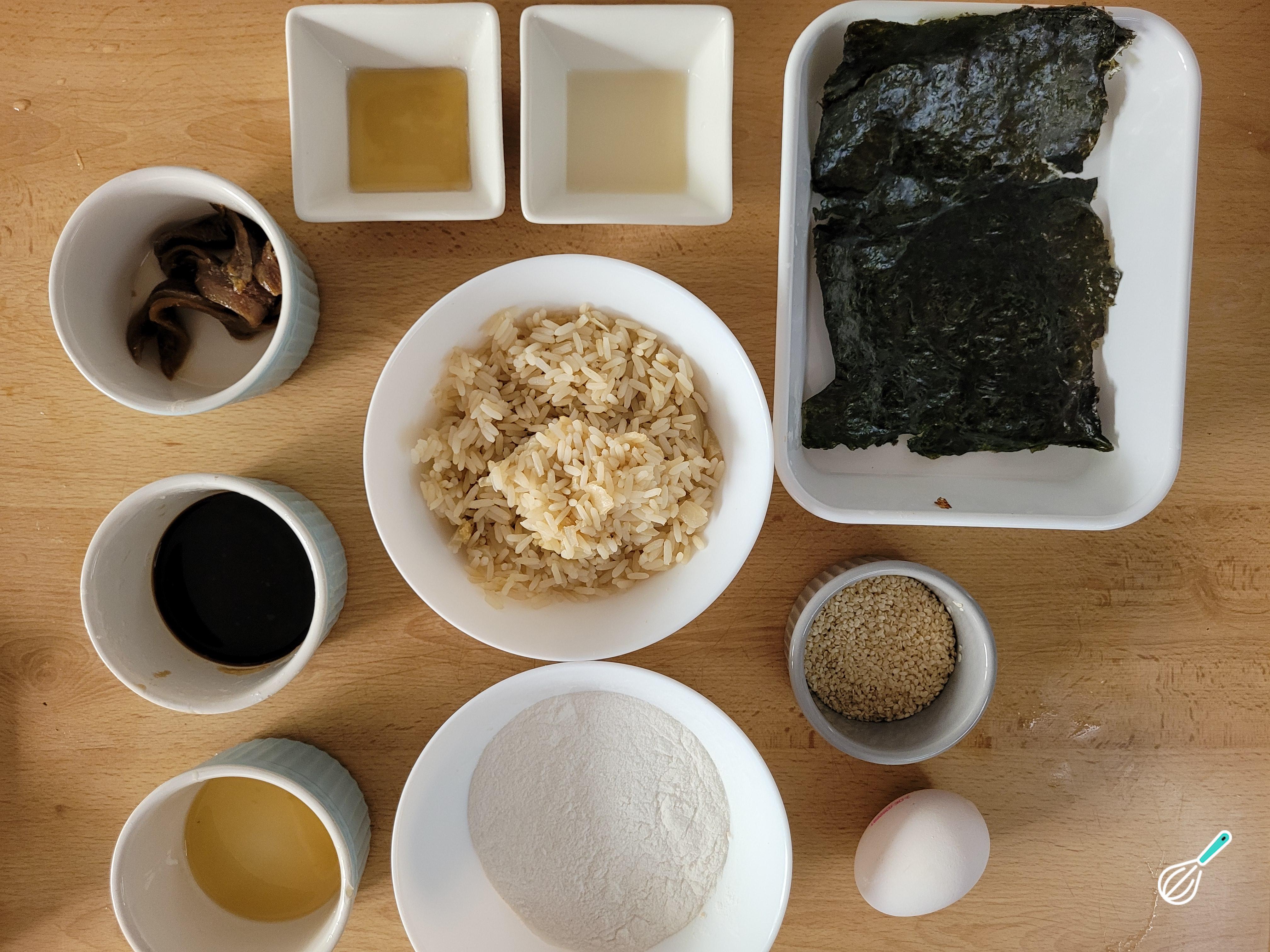 Separe os ingredientes para fazer o seu bolinho de arroz coreano.