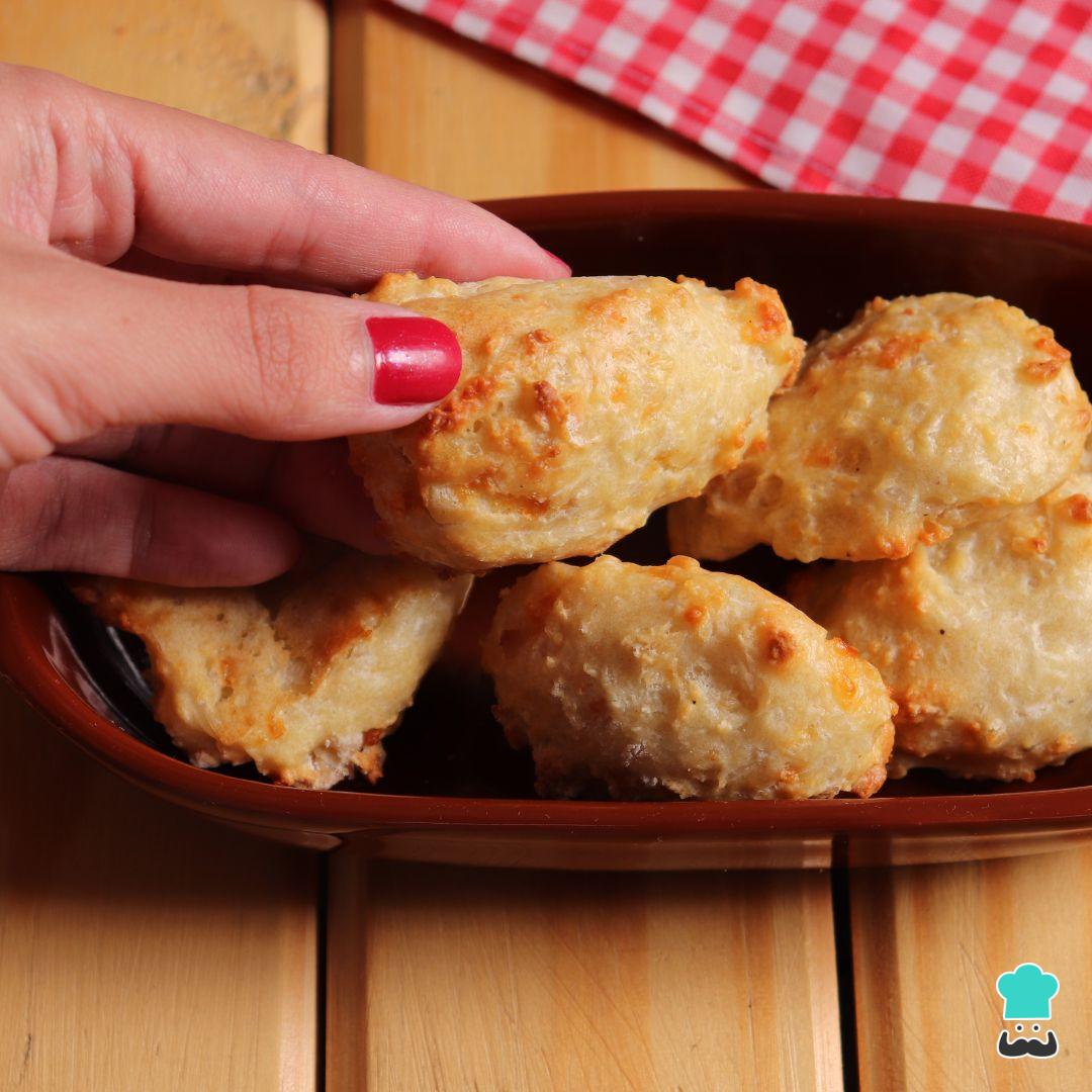 Misture até que fique homogêneo e dê para formar uma bolinha. Faça bolinhos do tamanho que preferir e leve para assar em forno preaquecido a 180 graus - você também pode usar a Airfryer nessa receita.