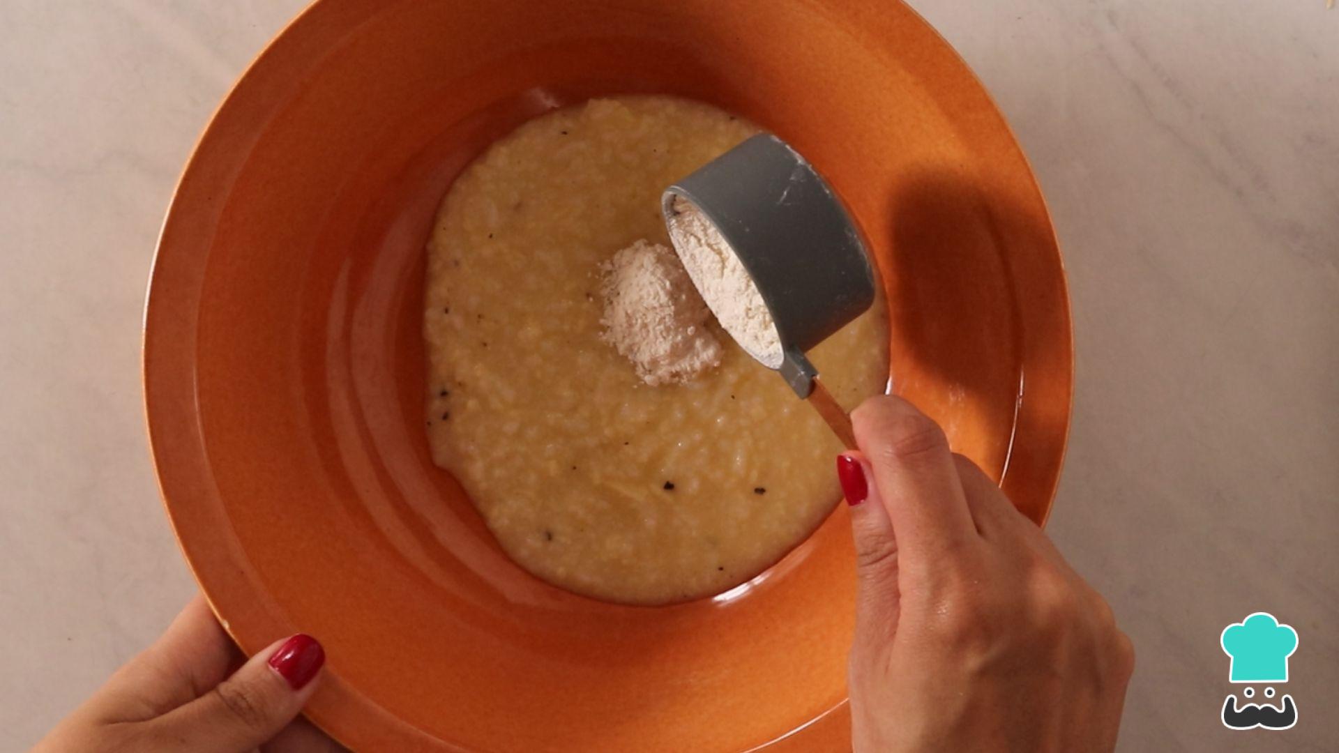 Despeje a mistura em uma tigela e acrescente a farinha de trigo aos poucos - pode ser que você precise de menos ou mais farinha.
