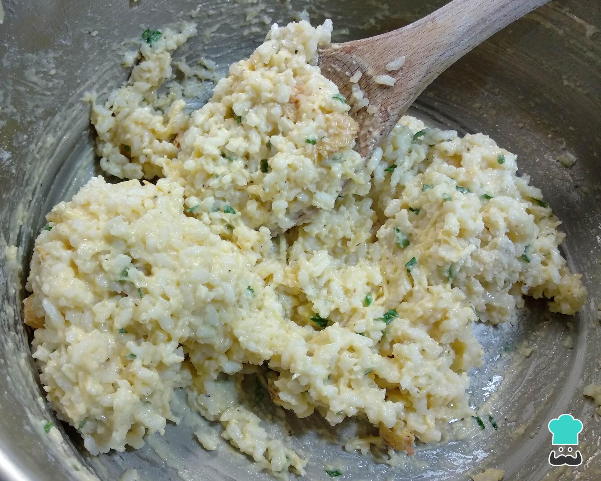 Misture bem todos os ingredientes até obter uma massa de arroz consistente mas ainda grudenta.