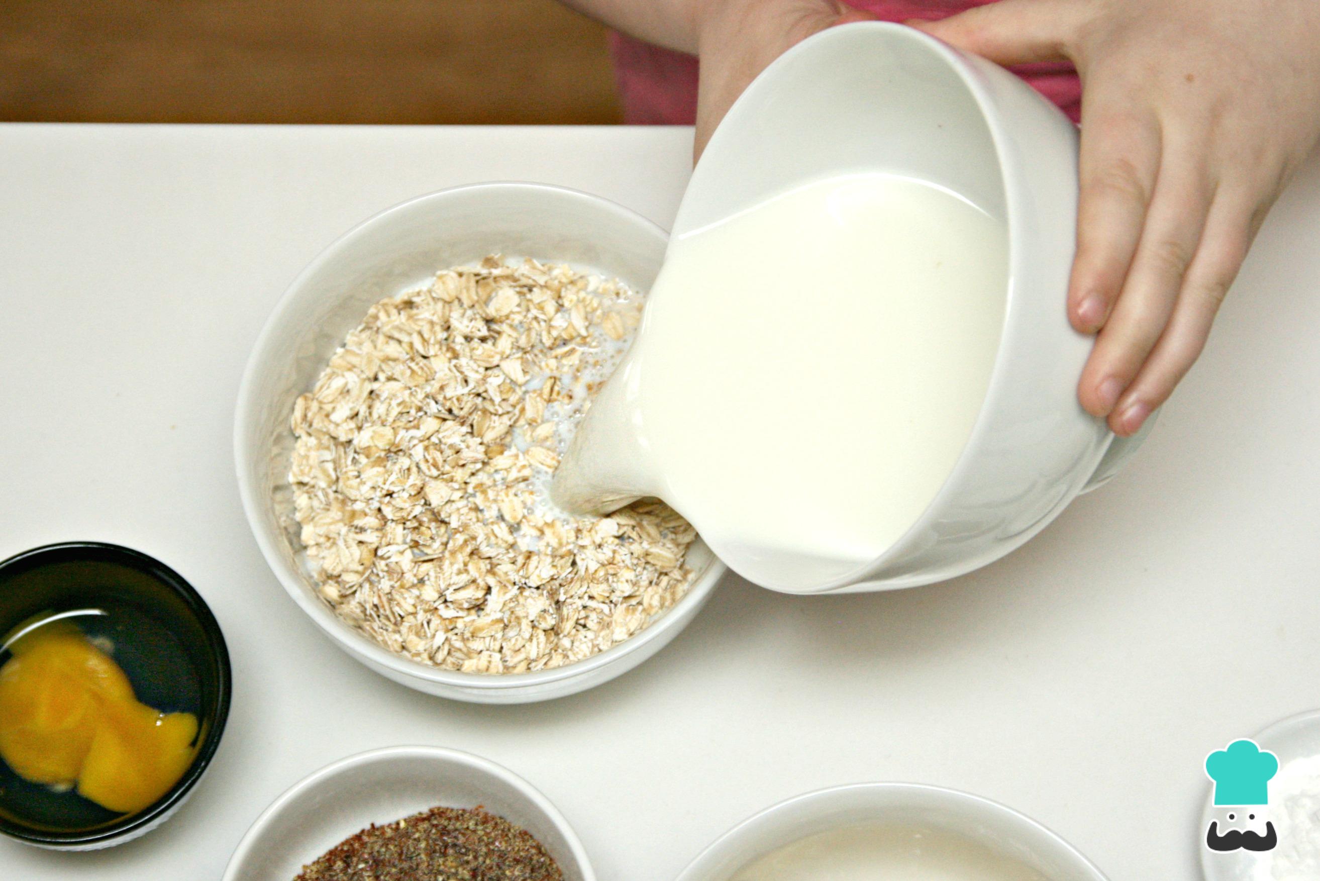Para tornar preparar o bolinho de atum com aveia, a primeira coisa a fazer é para hidratar a aveia com leite. Depois de alguns minutos, misture bem os dois ingredientes.