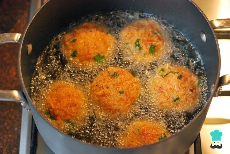 Com a massa dos bolinhos já pronta, é hora de aquecer a manteiga em uma frigideira em fogo médio. Forme os bolinhos com a mistura e frite-os em ambos os lados até dourarem. Coloque os bolinhos fritos escorrendo em papel toalha para absorver bem a gordura.