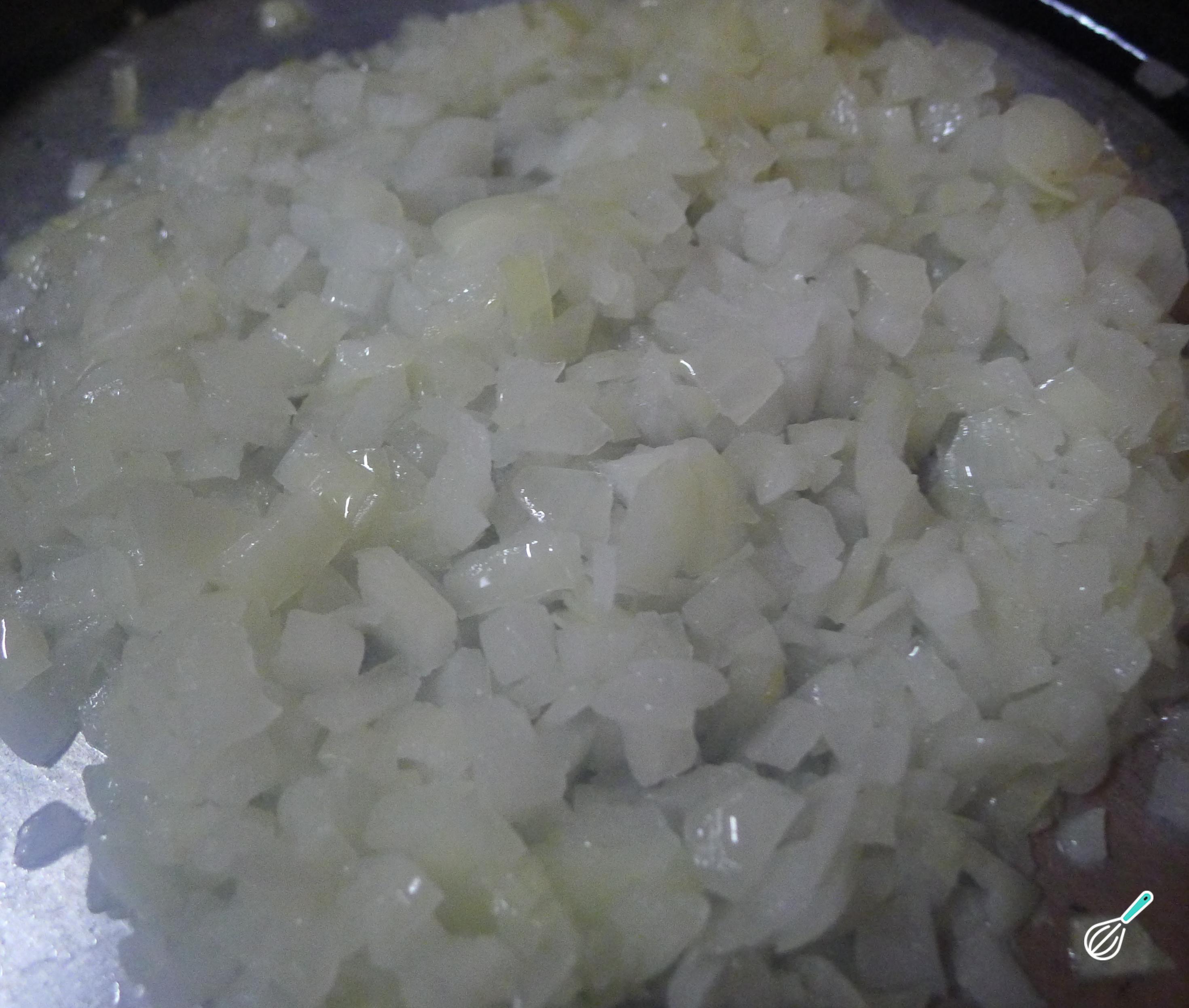 Pique finamente as cebolas e refogue em fogo médio, com um pouco de óleo, até que fiquem transparentes.