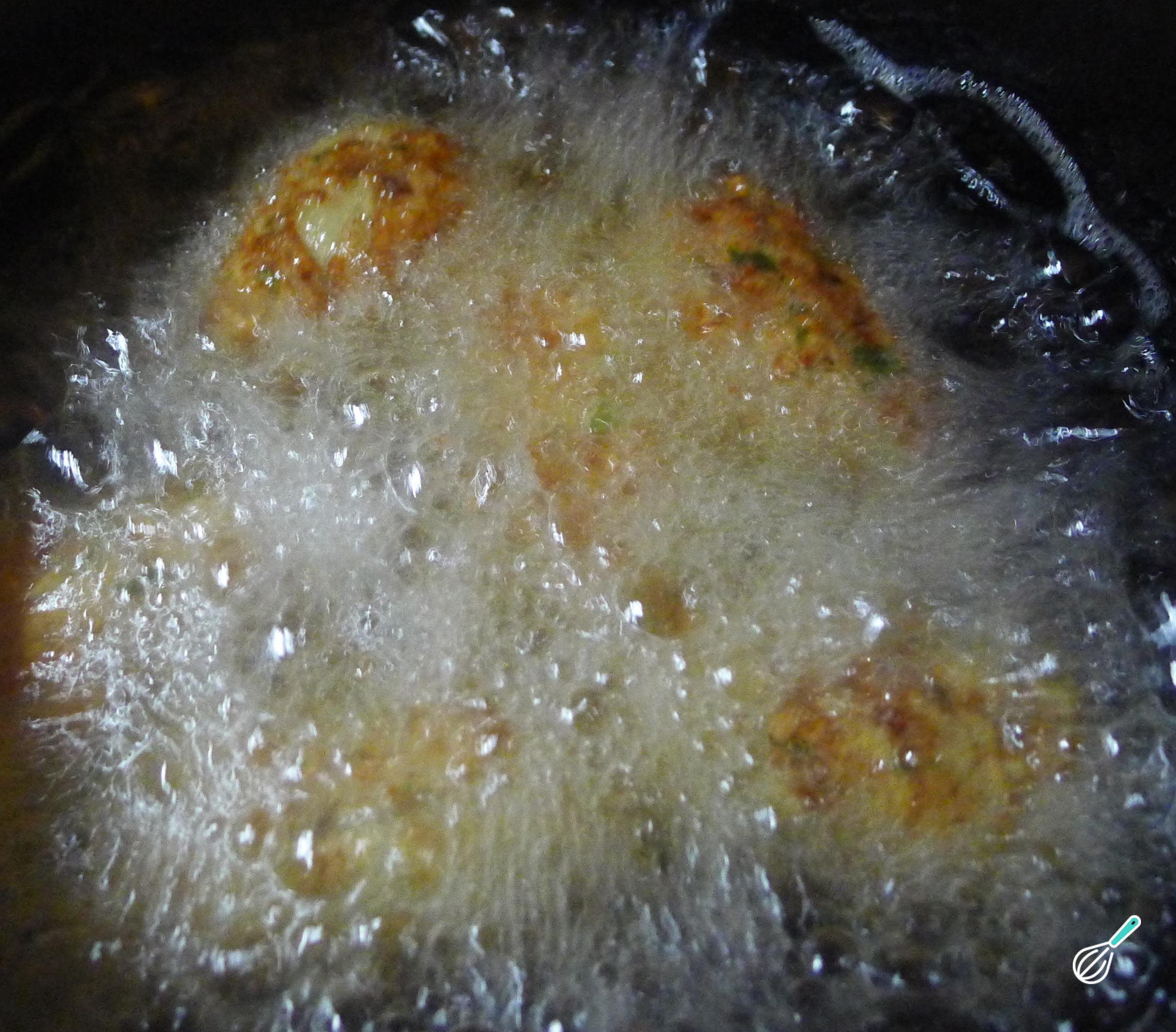 Frite em óleo bem quente e, quando estiverem feitos, coloque-os sobre papel absorvente, para escorrer o excesso de gordura.