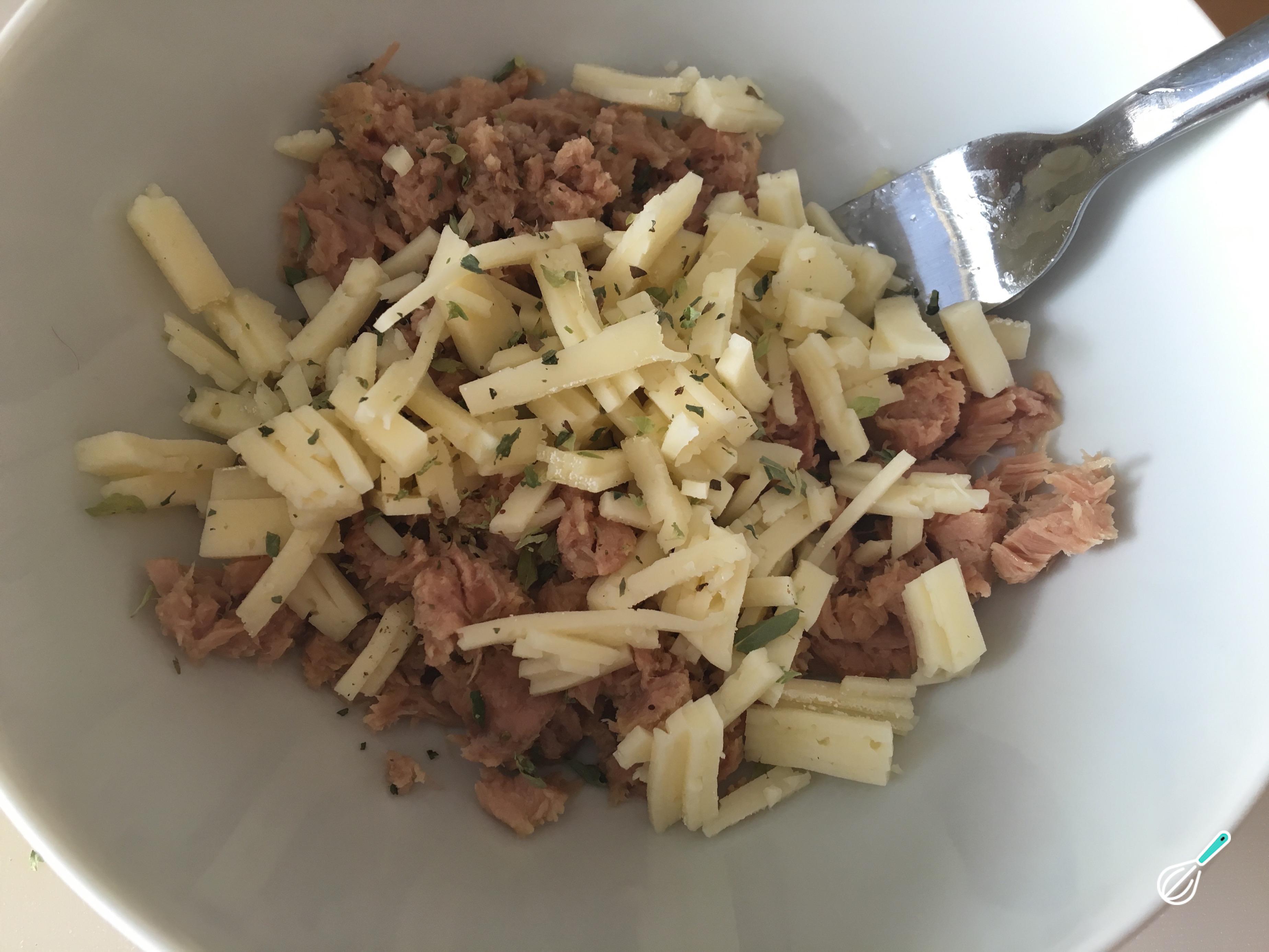 Dica: Não é necessário temperar com sal, uma vez, que o atum e o queijo já o são.