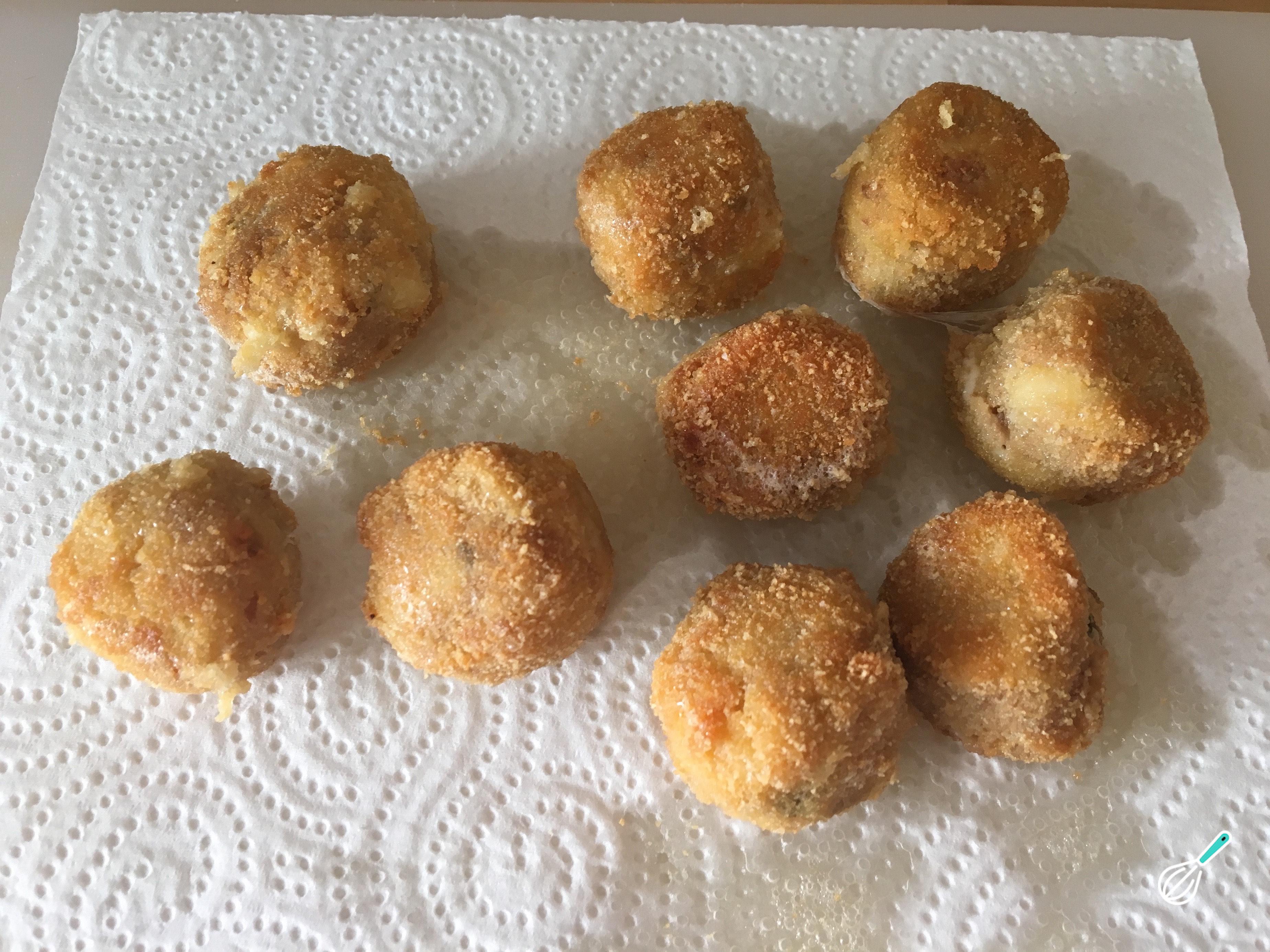 Uma vez, empanados, frite em óleo abundante e deixe que cozinhem até que fiquem dourados. Retire os bolinhos e coloque sobre papel de cozinha para que percam o excesso de óleo.
