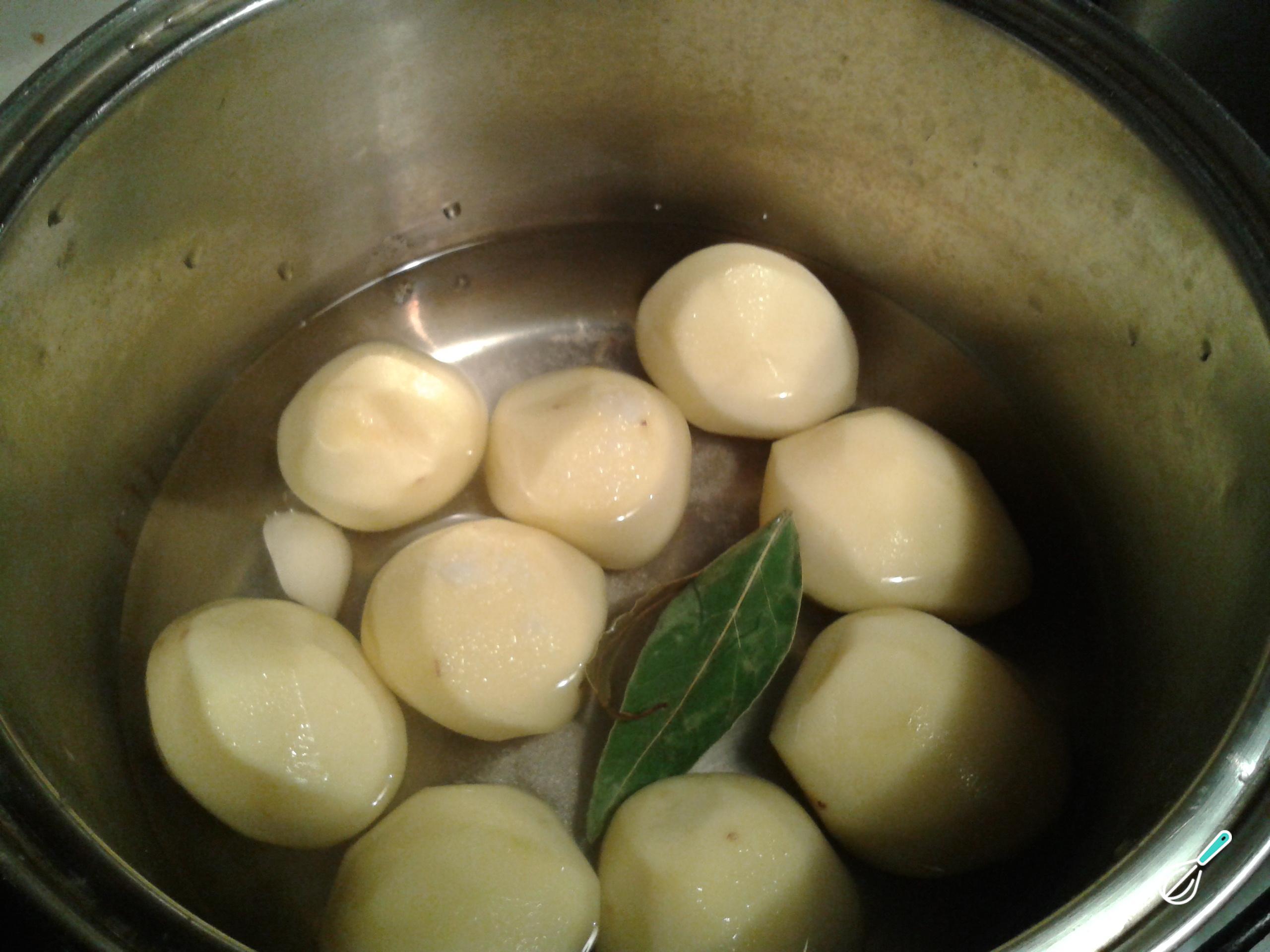 Espera até que as batatas fiquem macias e, quando estiverem completamente cozidas, amasse para formar um purê, no qual você deve adicionar sal e pimenta.
