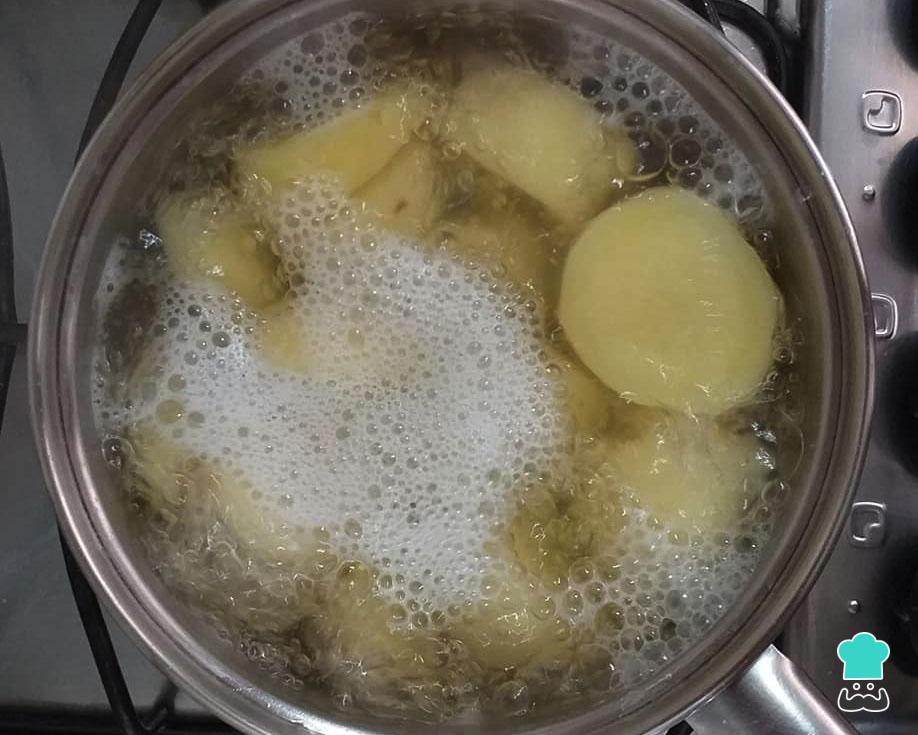 Cozinhe as batatas com água e sal, até que amoleçam.