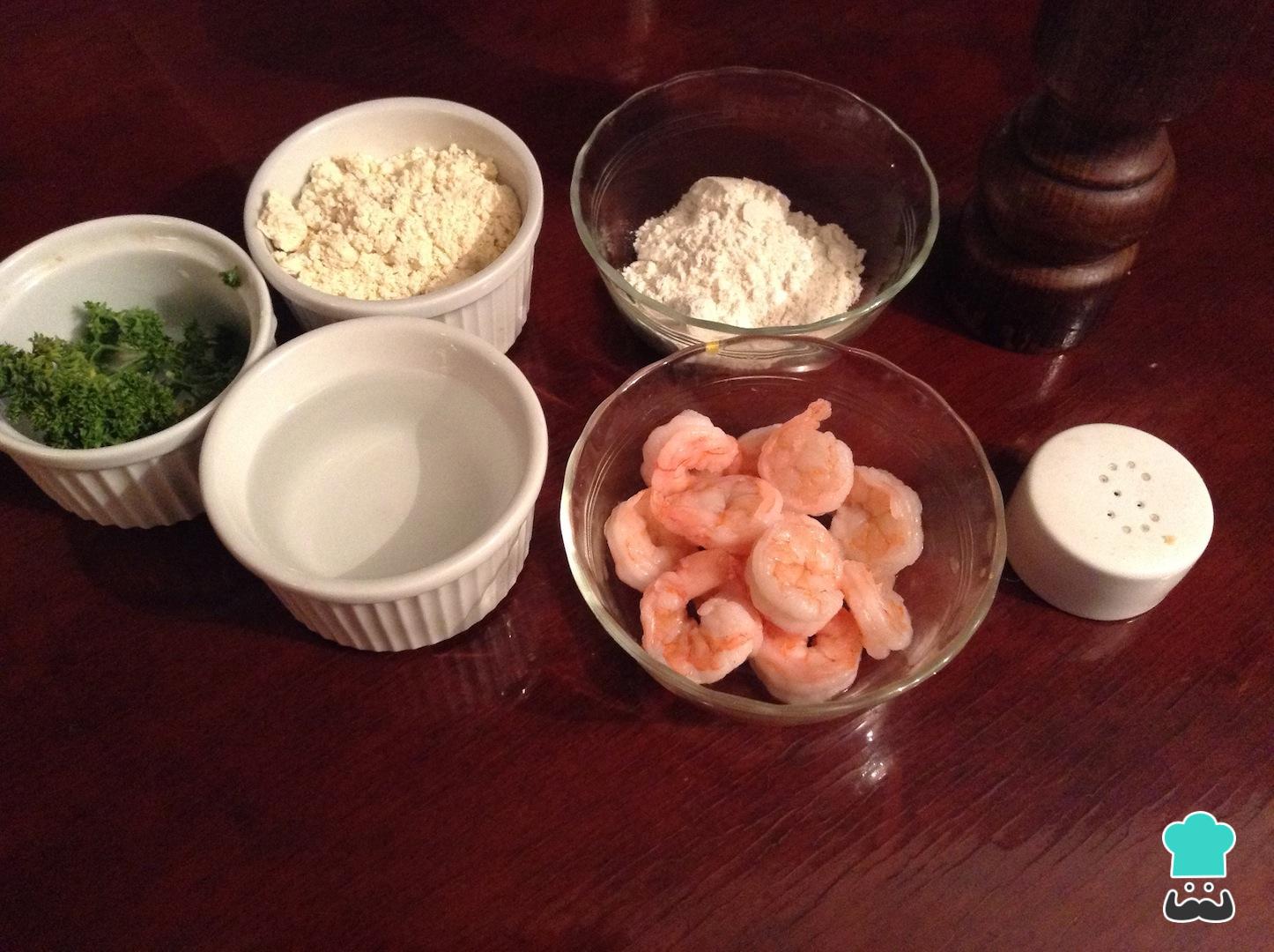 O primeiro passo desta receita de bolinho de camarão é reunir os ingredientes.