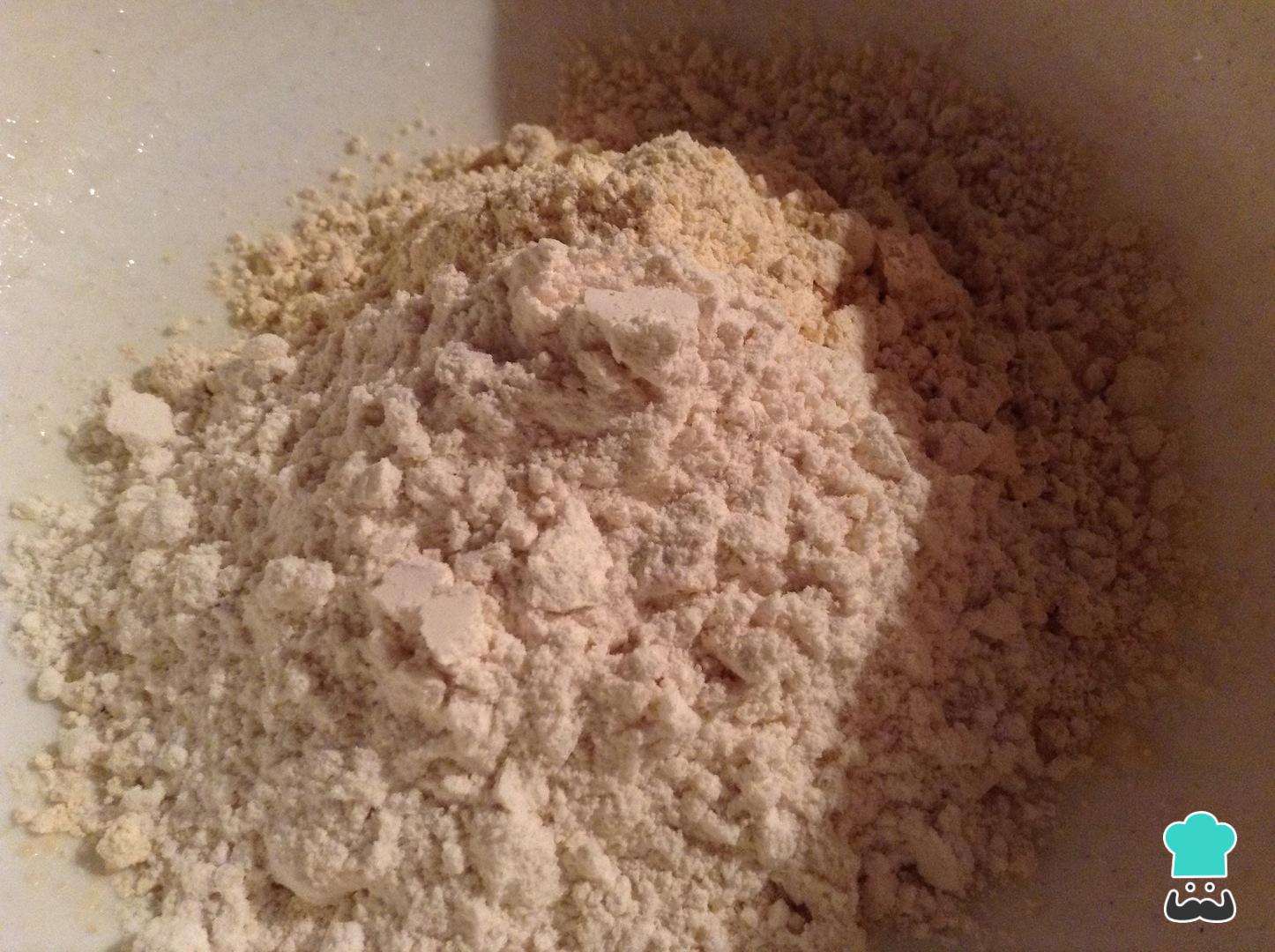 Em uma tigela misture as farinhas de trigo e de grão-de-bico.