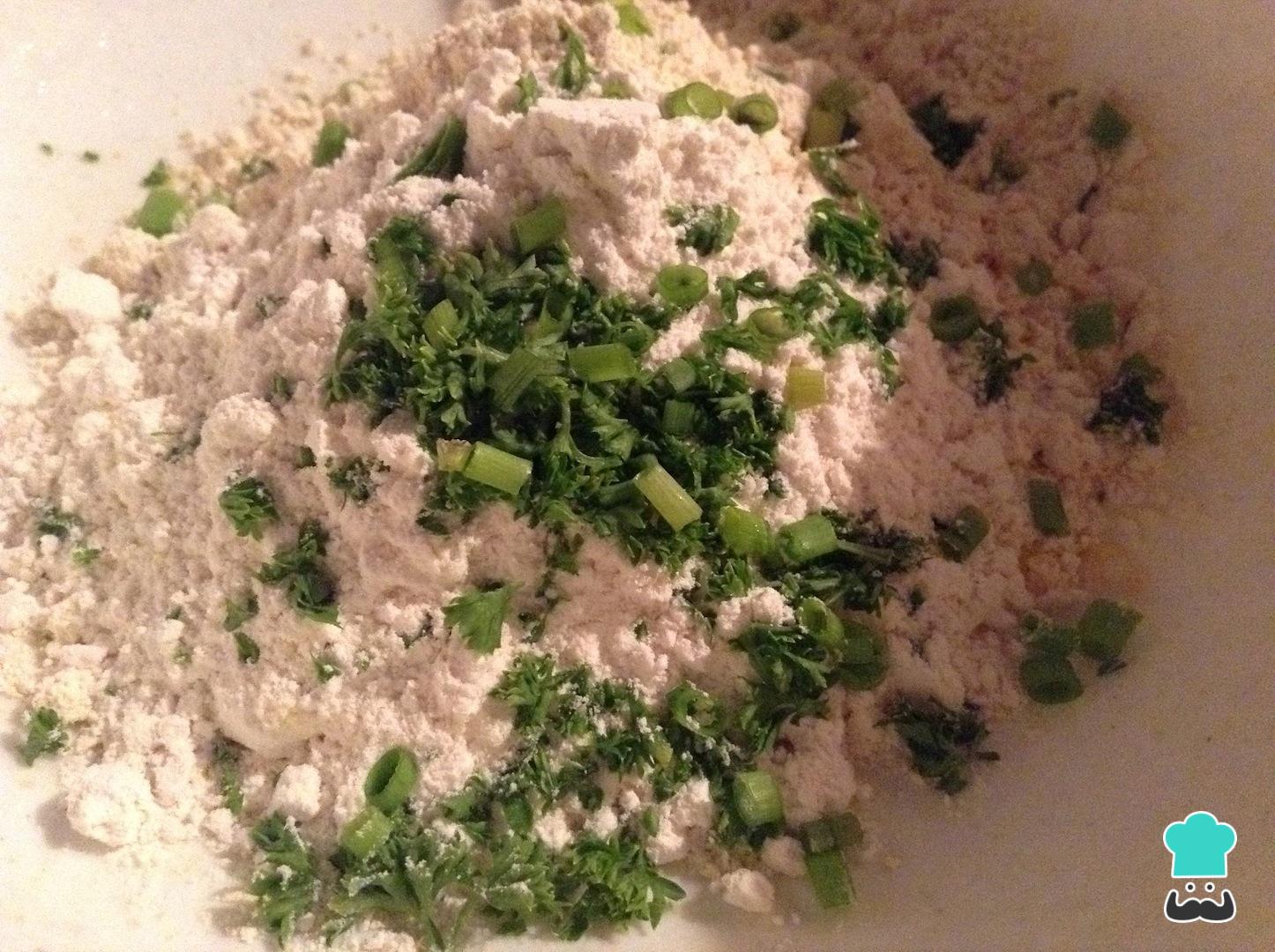 Acrescente a salsinha e a cebolinha à tigela das farinhas e misture.