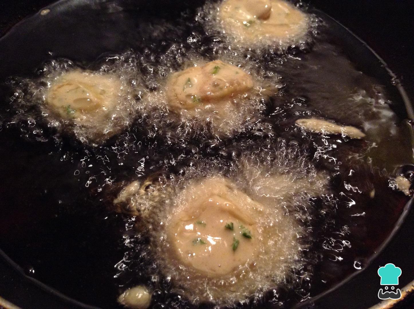Leve uma panela com bastante óleo para fritar em fogo médio. Assim que estiver quente, adicione algumas colheres de sopa da mistura anterior e deixe fritar de ambos os lados, até que fiquem douradas.