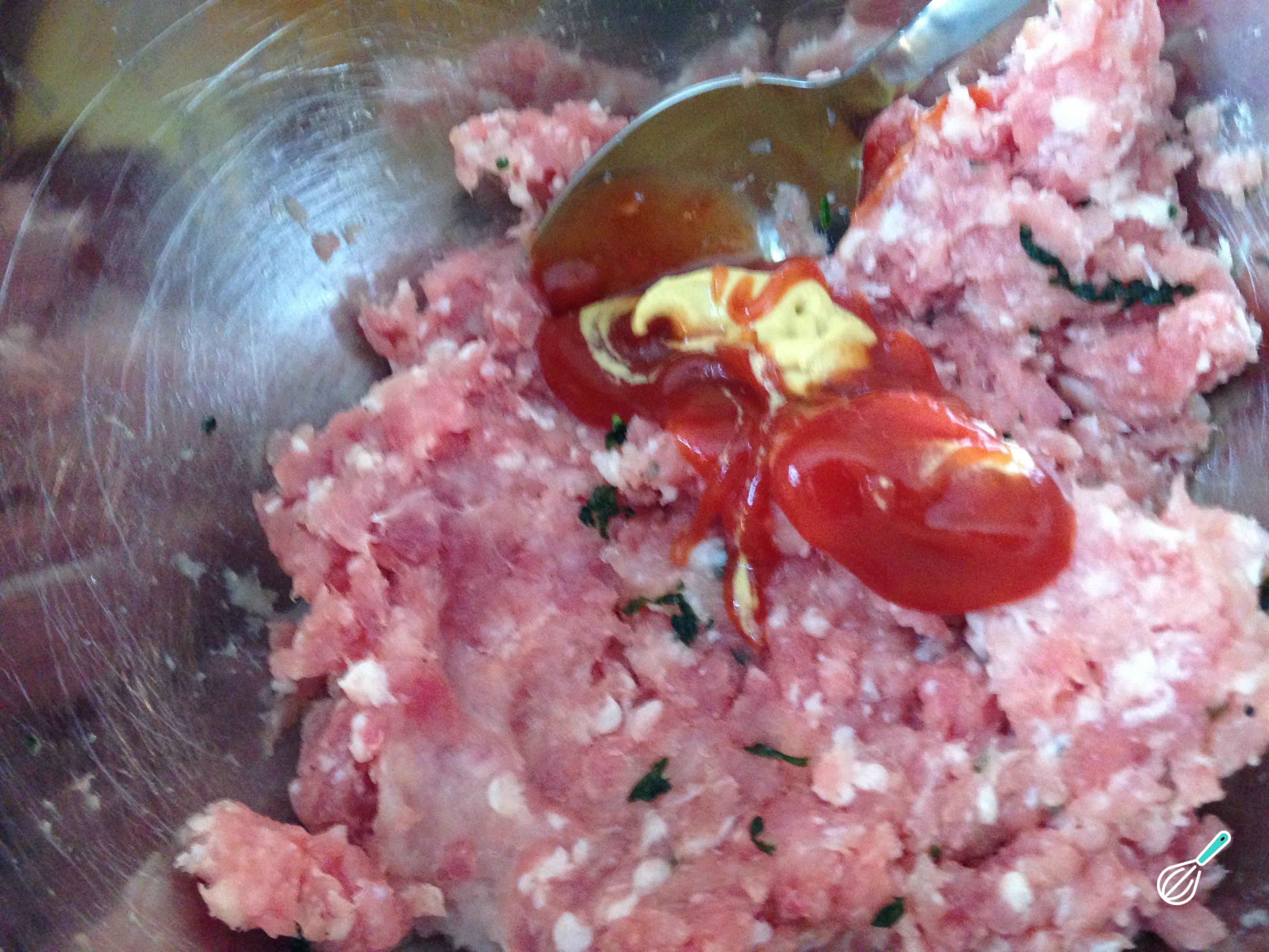 Adicione o catchup e a mostarda e continue misturando bem. Deixe descansar na geladeira por 15 minutos.
