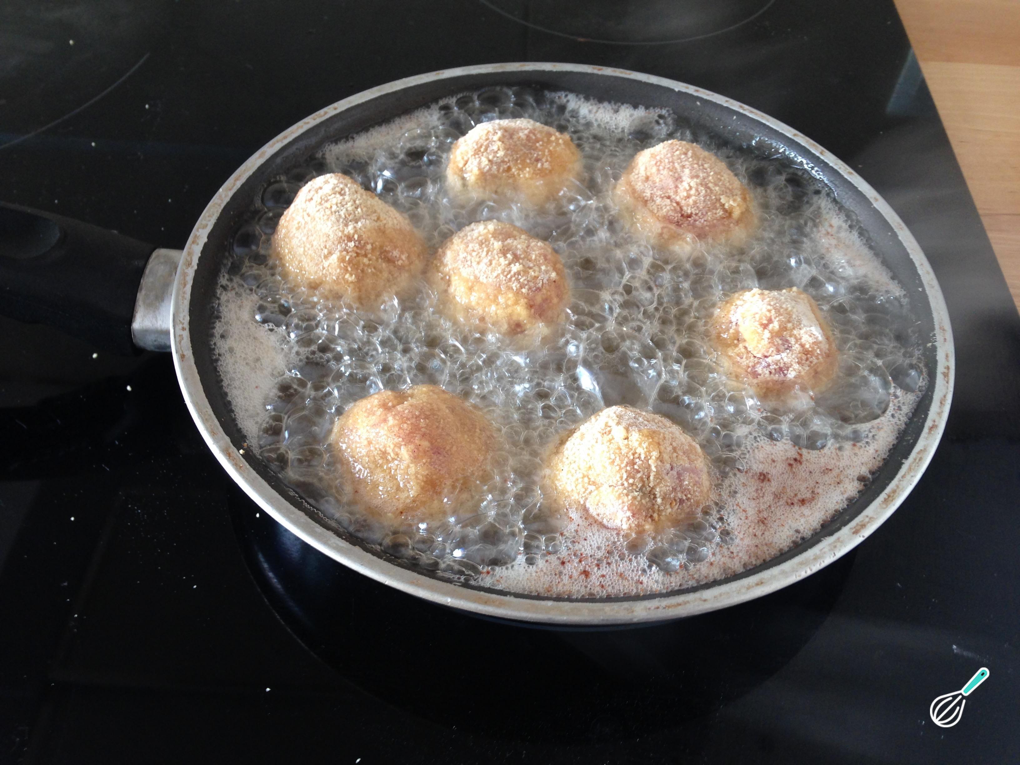 Frite os bolinhos de carne moída em óleo fervente. Lembre-se que o óleo deve estar bem quente para que a massa fique crocante.