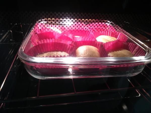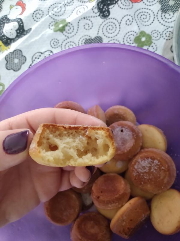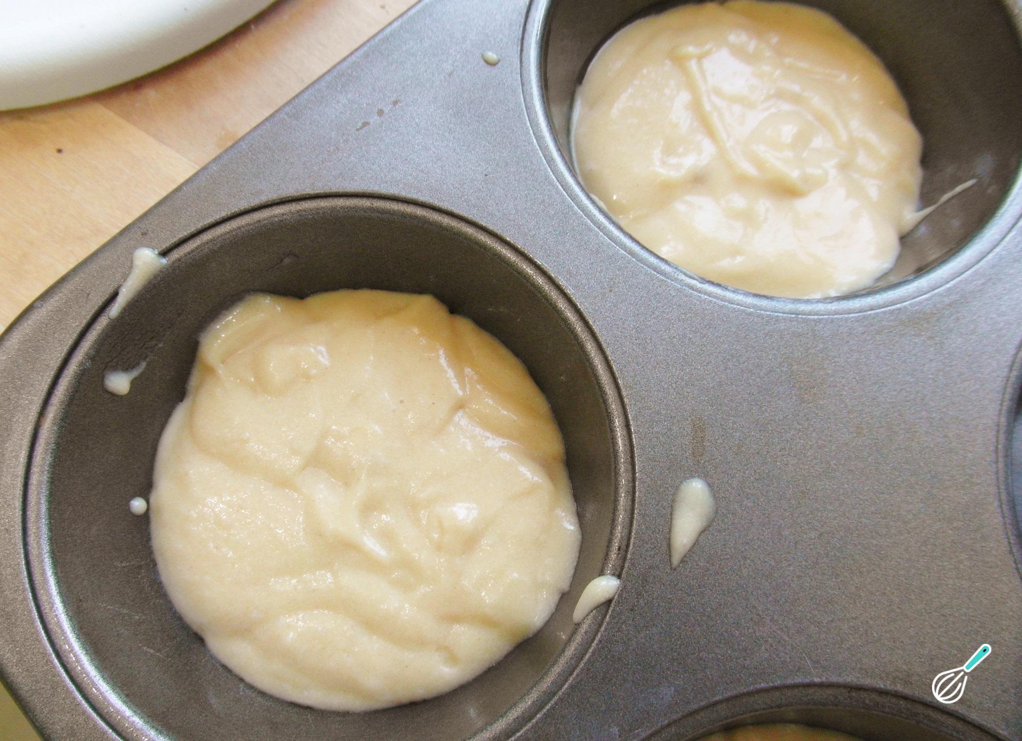 Unte uma forma de muffins ou de cupcakes e coloque nela porções da massa dos bolinhos de chuva, deixando um espaço até ao topo porque vai crescer. Leve ao forno a 180ºC por 20-30 minutos ou até os bolinhos dourarem.