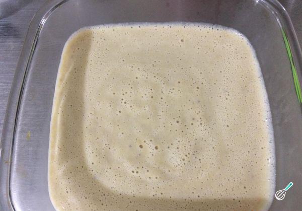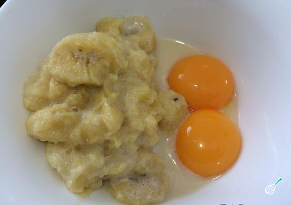 Bata bem a mistura da banana, com a ajuda de um fouet até obter uma massa homogênea.