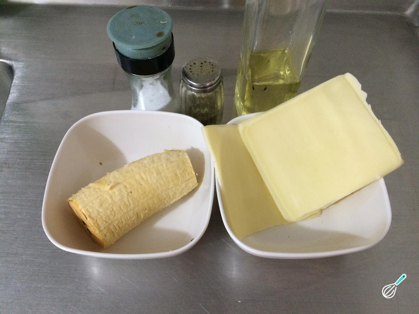 Antes de fazer fazer o bolinho de chuva com banana e queijo, o primeiro passo é deixar todos os ingredientes prontos. Lembre-se que a banana deve estar madura!