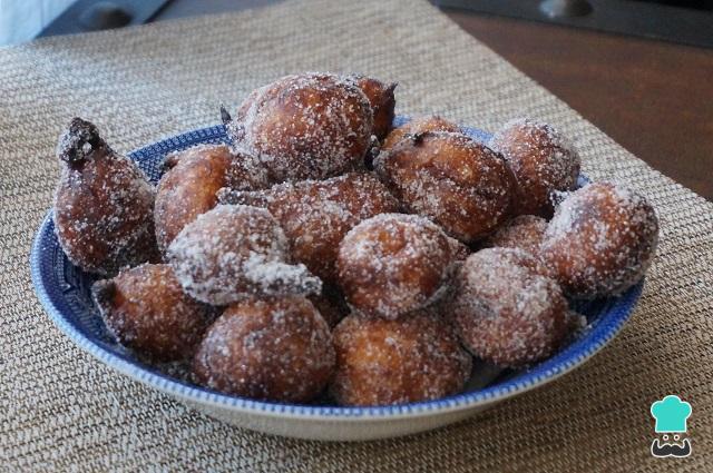 Deixe os bolinhos fritar até ficarem douradinhos, virando-os de vez em quando para dourarem por igual de todos os lados. Retire os bolinhos para um prato com papel absorvente e deixe escorrer o excesso de óleo, para conseguir bolinhos de chuva sequinhos.