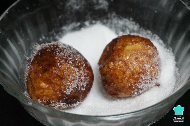 Por fim envolva os bolinhos de chuva em açúcar e canela, ou apenas em açúcar, e estão prontos!