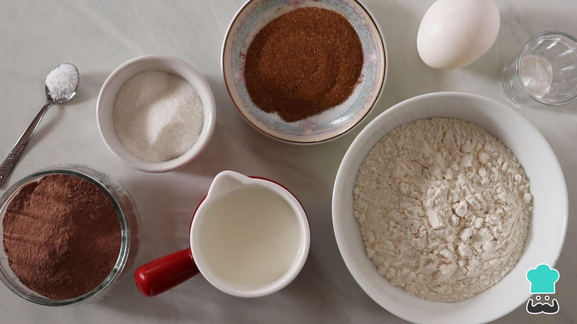 Comece separando os ingredientes do nosso bolinho de chuva de chocolate.