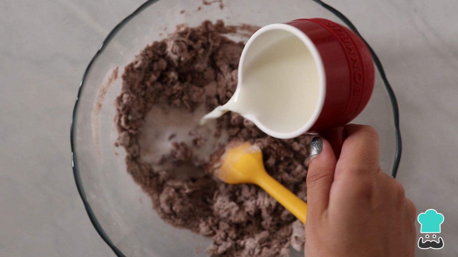 Em uma tigela coloque todos os ingredientes exceto o leite e misture bem.