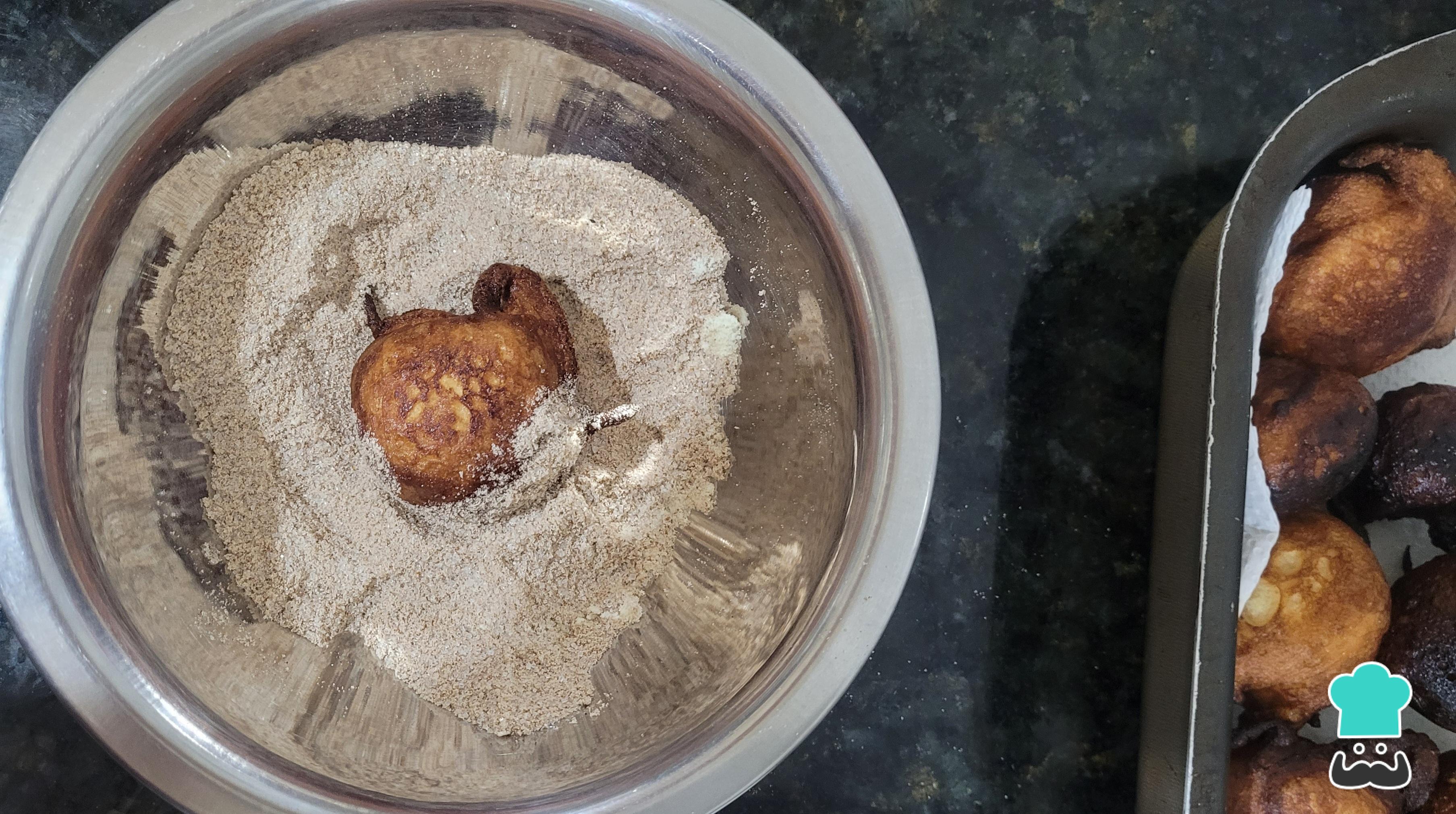 Retire e passe na mistura de açúcar, leite em pó e canela. Repita o processo com toda a massa.