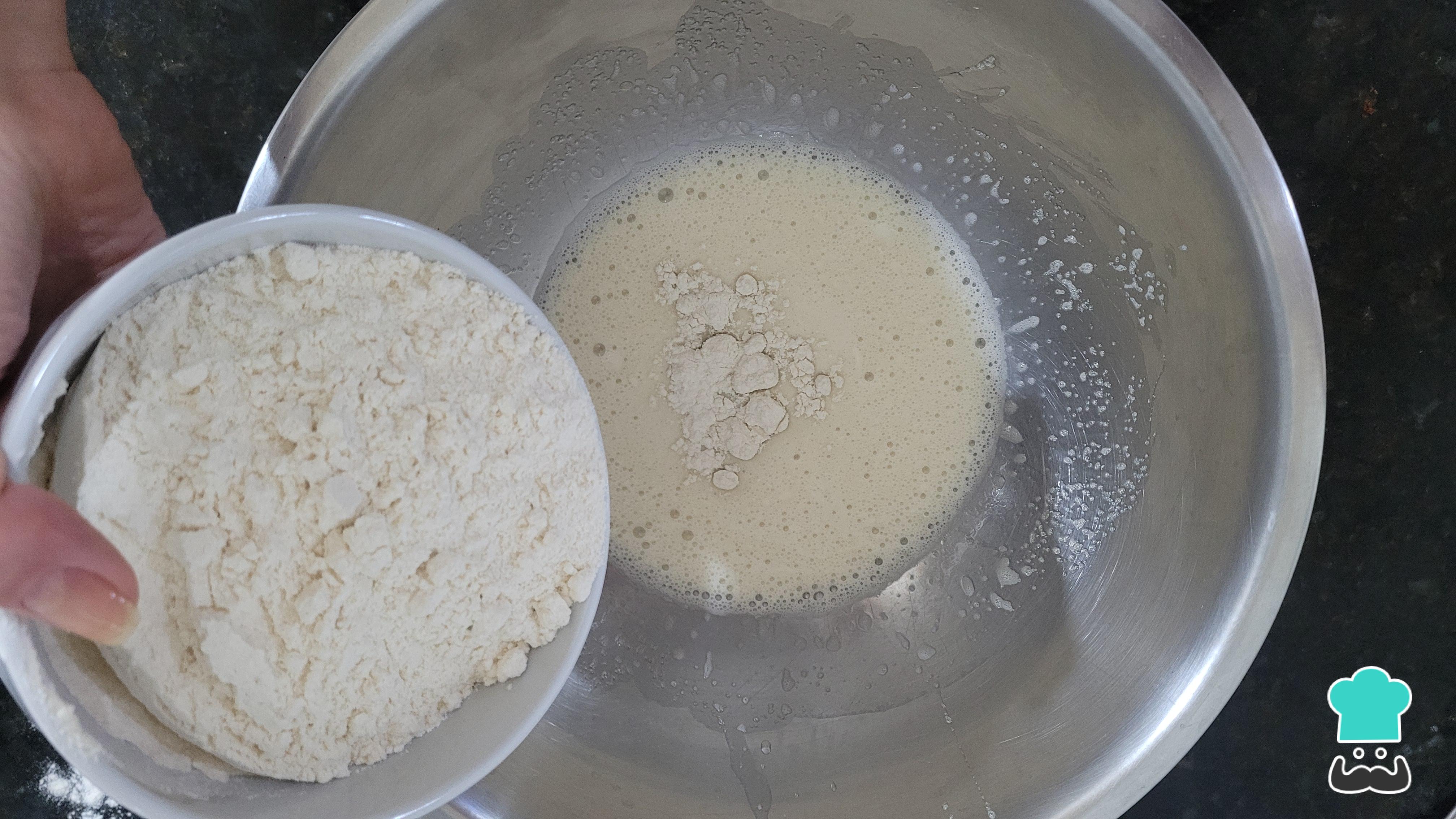 Acrescente o sal, o leite, o óleo e a farinha. Misture até que fique homogêneo.