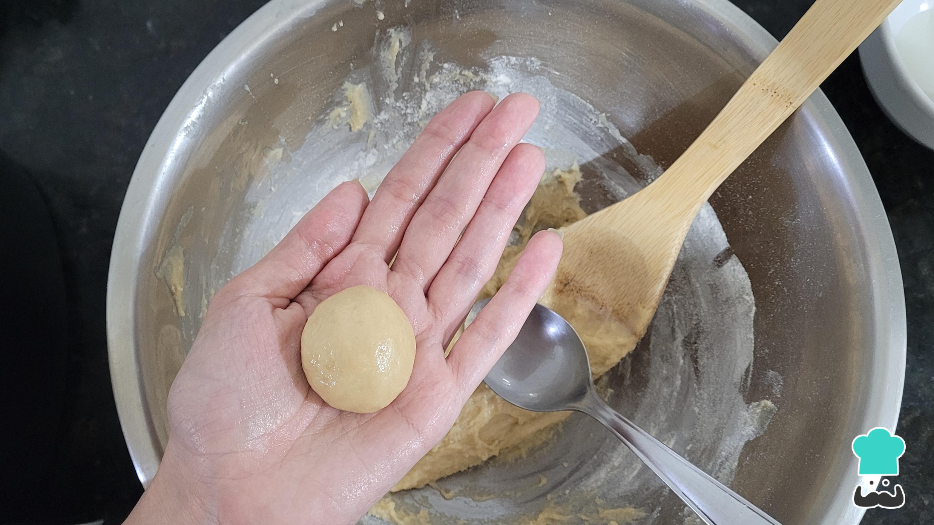 Dica: Se ela estiver muito líquida, sem ser possível moldar um bolinho, acrescente farinha aos poucos.