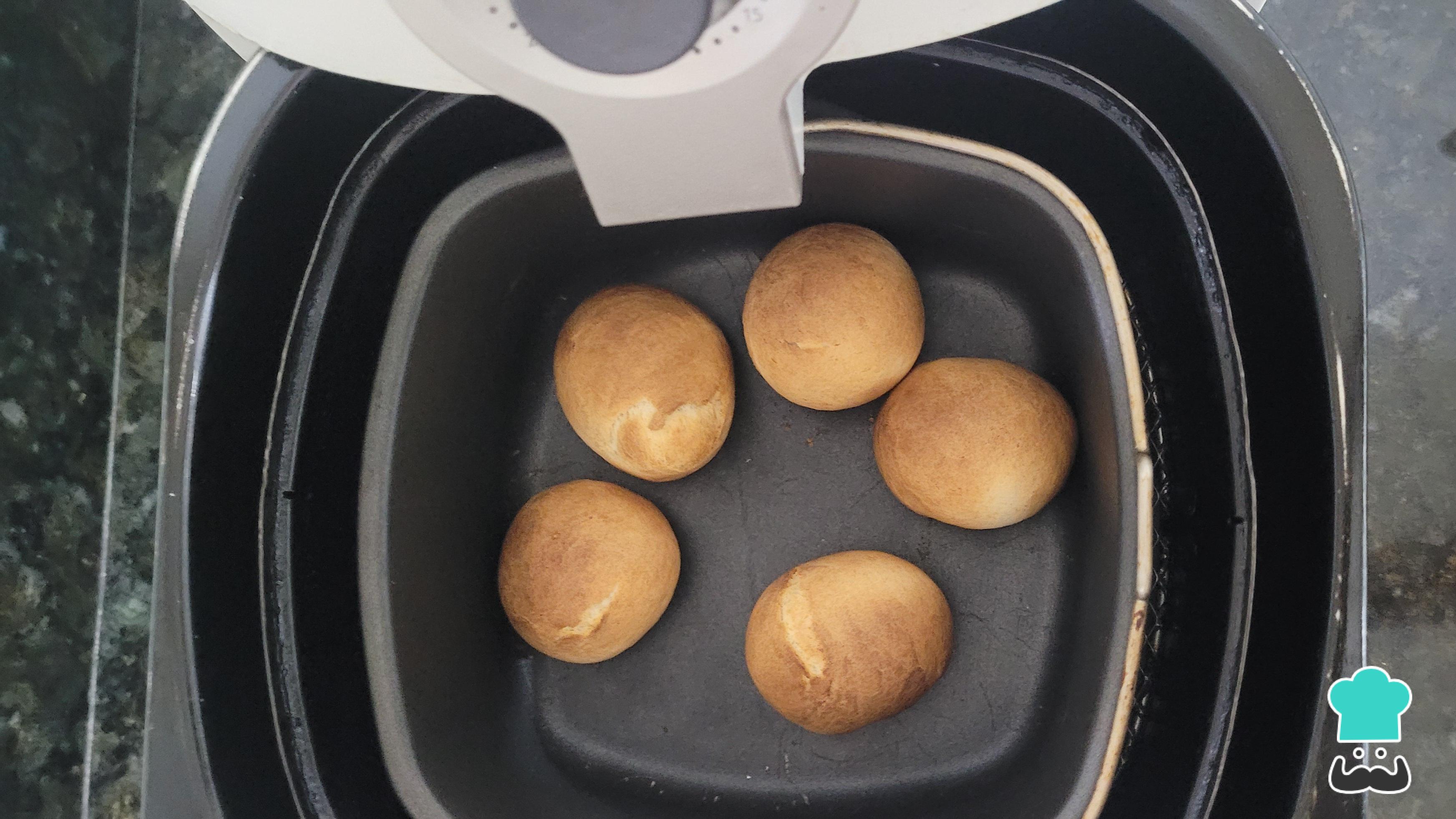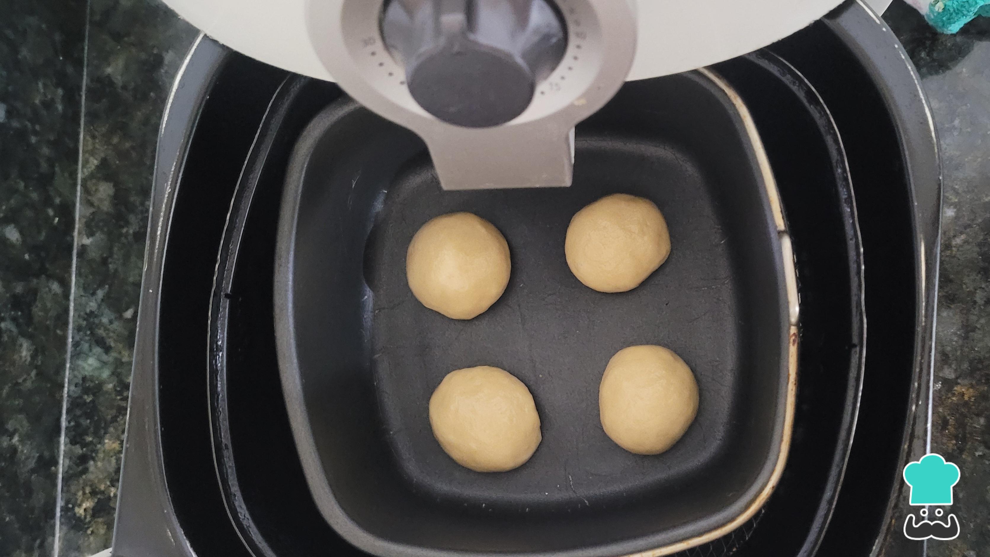 Coloque na Airfryer e deixa à 200 graus, por 10 minutos. Abra, vire os bolinhos para dourarem por igual e deixe por mais 10 minutos