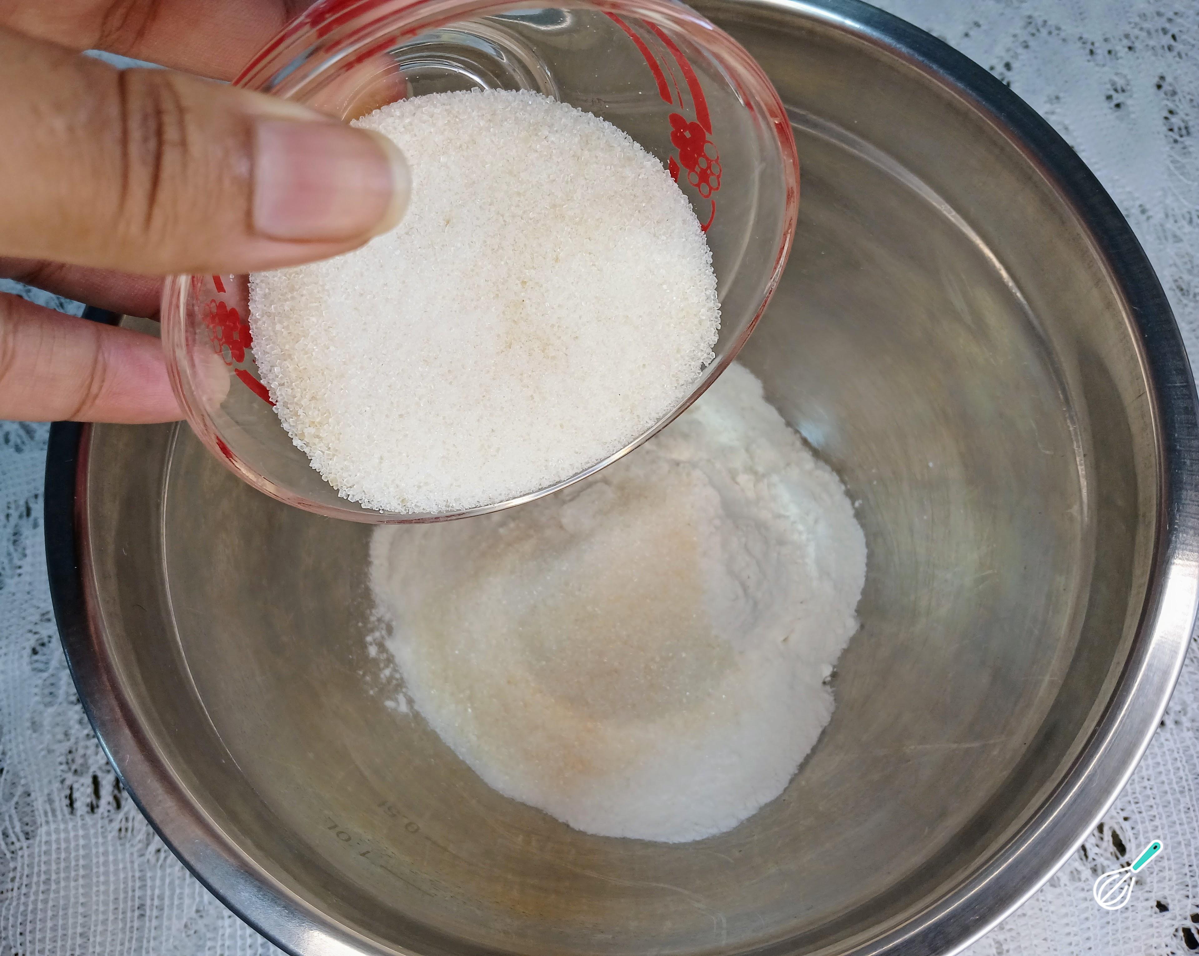 Dica: Misture muito bem as farinhas com o açúcar. As farinhas podem ser substituídas pela mesma medida de farinha de trigo.