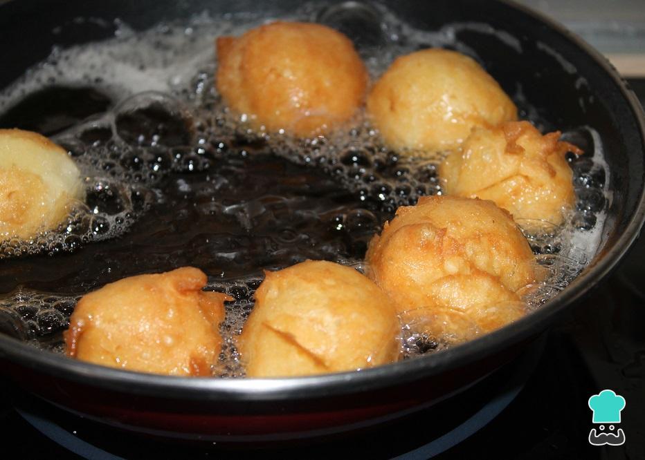 Dica: Com a ajuda de uma colher, vá virando os bolinhos para que fritem por igual de todos os lados. Frite somente 4 a 6 bolinhos de cada vez, para evitar que grudem uns nos outros.