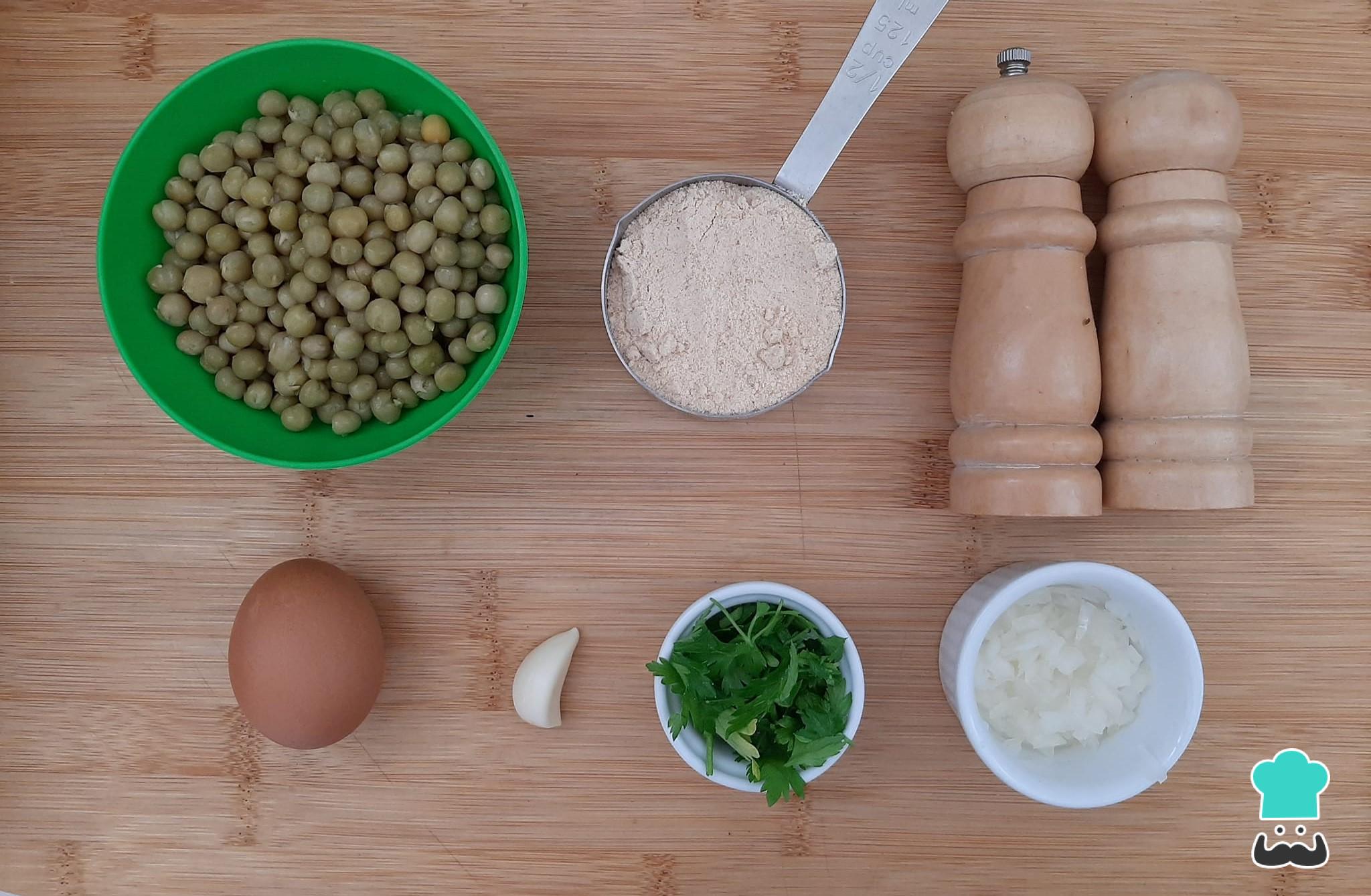 Separe todos os ingredientes necessários para preparar a receita de bolinho de ervilha.