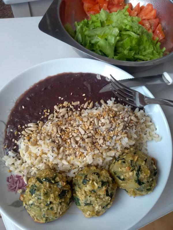 Fiz pro meu almoço, ficou muito bom!! Só não sei se usei pouco espinafre... esse um maço, seria quanto aproximadamente? Considerando xícara como medida, por exemplo. Pergunto porque hoje quando fiz renderam 8 bolinhos só haha achei pouco.