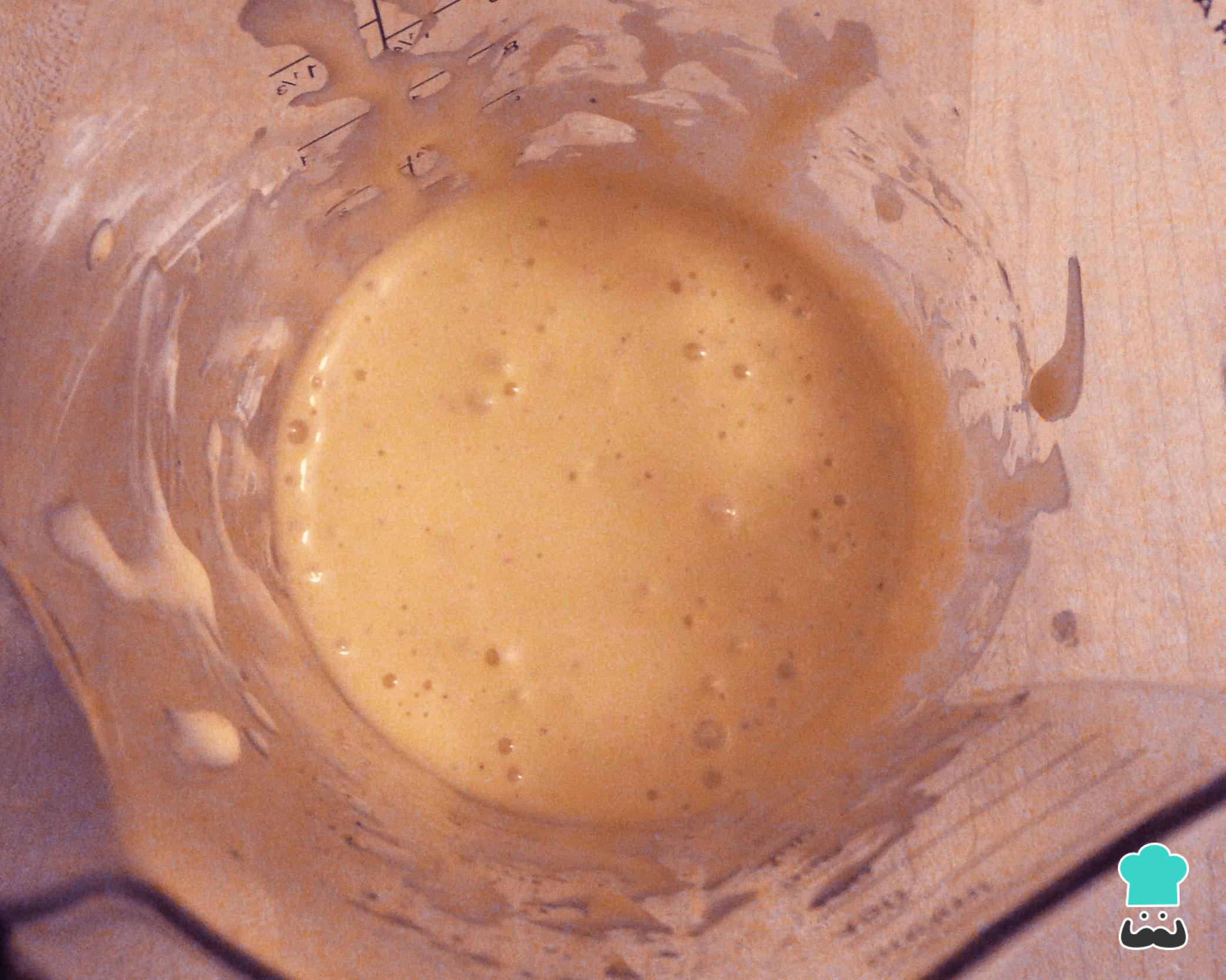 Numa tigela ou no liquidificador bata a farinha de grão com a água e tempere com um pouco de sal. Quando estes ingredientes estiverem bem misturados a consistência será semelhante a ovo batido.