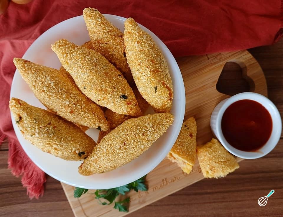 Dica: Esta massa resseca com facilidade. Sugerimos que a medida que for modelando os bolinhos, cubra-os com um pano limpo e úmido até a hora da fritar.