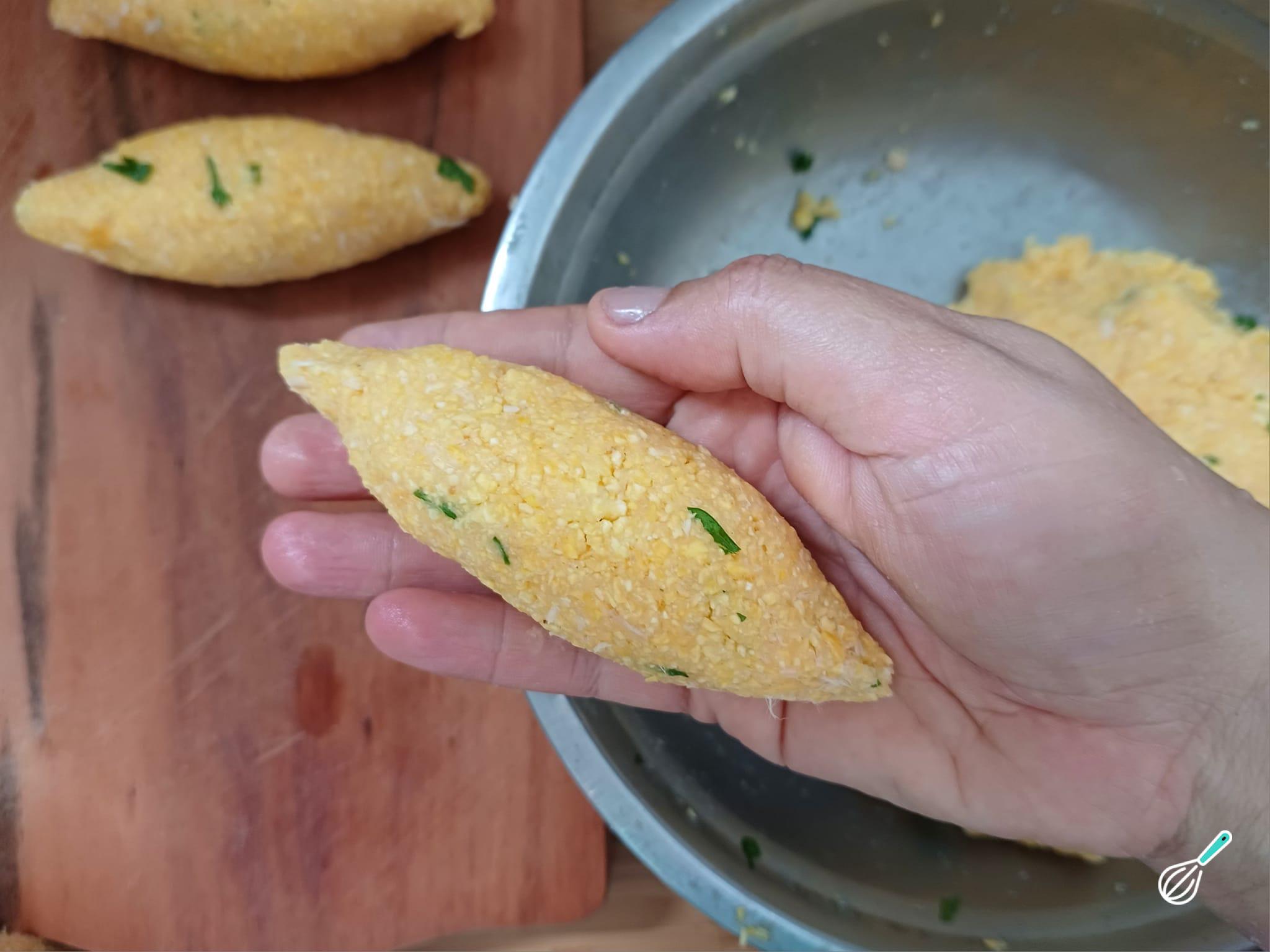 Feche a massa modelando como se fosse fazer um quibe e certifique-se de que ela esteja bem fechada.