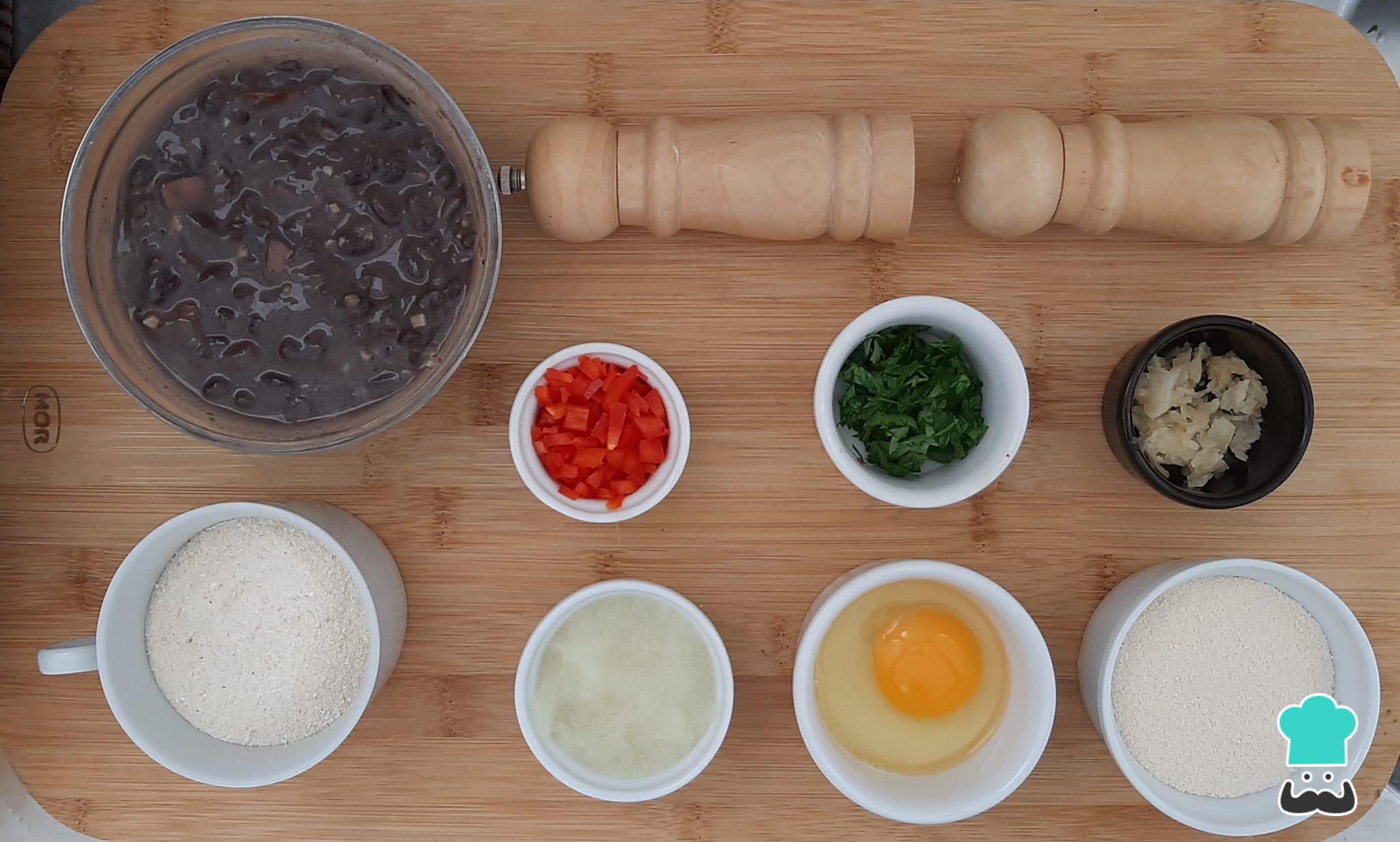 Separe os ingredientes necessários para preparar seu bolinho de feijão simples.